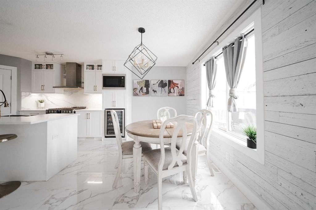Welcome to 237 Sandstone Lane, where exceptional craftsmanship, thoughtful upgrades, and timeless design come together in one stunning Stone Creek home. Major exterior improvements include updated shingles, exterior doors, a newer deck, and a dedicated hot tub pad with wiring completed (permit approved). Step inside to a spacious front living room featuring modern laminate flooring and a striking feature wall, flowing seamlessly into a show-stopping white kitchen by Jos-Will Millwork. Built with solid maple doors, elegant gold hardware, under-cabinet lighting, glass-front uppers, and a massive 8-foot island topped with seamless quartz countertops, this chef’s kitchen is both beautiful and built to last. Upgraded Frigidaire Professional Series appliances (including a gas stove), luxury vinyl plank flooring, contemporary lighting, a coffee bar, and a built-in wine cooler complete the space. The main level also offers a stylish updated 2-piece bathroom and a spacious dining area accented by a chandelier overlooking the backyard. Upstairs you’ll find new trim, new closet doors, three bedrooms, and two fully renovated bathrooms — all finished with matching cabinetry, quartz countertops, new toilets, mirrors, and luxury vinyl plank flooring for a cohesive high-end feel. The newly completed basement features a professionally finished California knockdown ceiling, cozy family room, spacious bedroom, full bathroom, and beautiful laminate flooring — perfect for guests or growing families. Outside, enjoy the private backyard oasis with a deck (2021) with privacy lattice, full fencing, tasteful landscaping with Aspen trees, interlocking brick, flower beds, an enclosed dog run with artificial turf, and a detached double garage (2022) with rear alley access. Additional highlights include central A/C and a prime location close to schools, shopping, and all Stone Creek amenities. Move-in ready luxury — this home truly checks every box!
