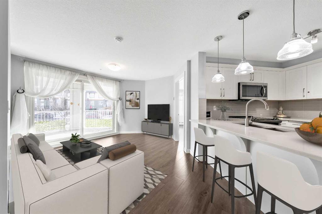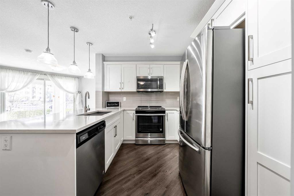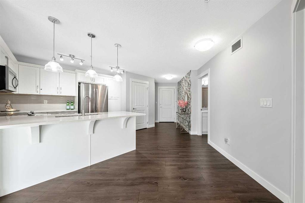 Welcome to Auburn Bay one of Calgary’s most loved lake communities where this beautifully maintained 2-bedroom, 1 bathroom condo truly stands out. This unit is conveniently located just steps from the elevator and offers 764 sq. ft. of well-designed living space, plus a massive corner balcony—an ideal blend of comfort, convenience, and standout outdoor space. Freshly painted and professionally cleaned, it’s truly move-in ready. From the moment you step in, you’ll notice the care and upgrades throughout, starting with a chef-inspired kitchen featuring upgraded stainless-steel appliances, quartz countertops, an under-mount sink, and stylish cabinetry—perfect for everyday living and easy entertaining. The bright, open-concept living space flows seamlessly to what can only be described as a Sunny, Massive 290 sq. ft. covered corner balcony an incredible amount of outdoor space for morning coffee, summer BBQs, and relaxing evenings, with space that truly feels like an extension of your living area, and ideal for year-round outdoor enjoyment. Patio furniture is included, and there’s also a gas BBQ outlet for year-round grilling. Both bedrooms are generously sized. Retreat to a generous primary bedroom. Enjoy a walk-through closet with direct access to the main bath. The second bedroom is spacious with a double closet perfect for guests, a home office, or a roommate. You’ll also appreciate convenient in-suite laundry, and 1 heated titled underground parking stall, oversized to accommodate a larger vehicle, with a dedicated storage locker—because convenience matters. Best of all, this building is pet-friendly (with board approval) and you’re just steps to Auburn Station groceries shopping, transit, restaurants, and everyday conveniences. Plus, as part of the Auburn Bay community, you’ll enjoy exclusive year-round lake access—whether it’s swimming in the summer, skating in the winter, paddleboarding, or simply relaxing at the beach. Quick access to Stoney and Deerfoot Trail completes the package—this is low-maintenance, lifestyle-focused living in one of Calgary’s most desirable lake communities, and an outstanding value for first-time buyers, professionals, downsizers, and investors.