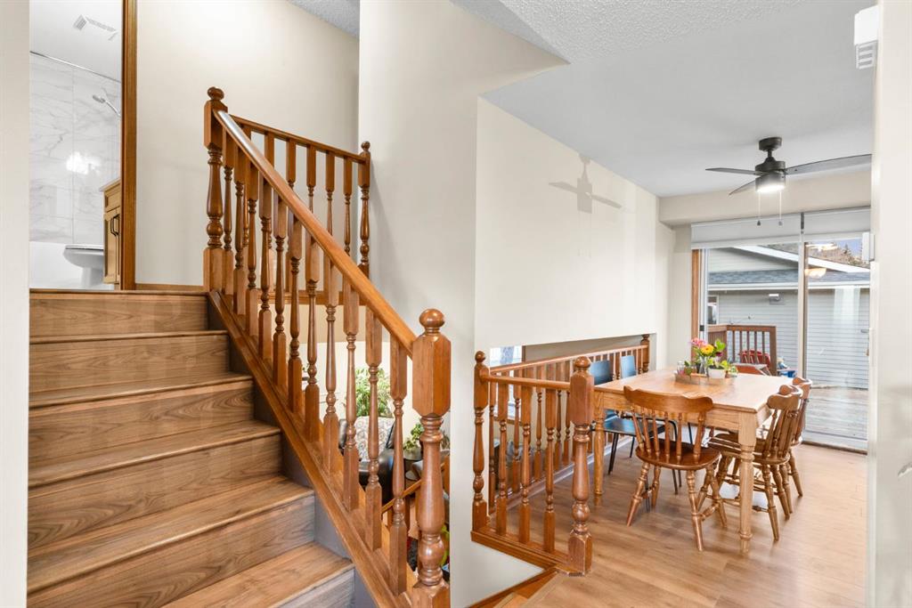 Outside, enjoy a large backyard and deck, perfect for summer gatherings or quiet mornings. The massive heated double garage offers excellent storage and peace of mind with recently replaced garage roofing, along with two additional parking stalls beside the garage for added convenience.