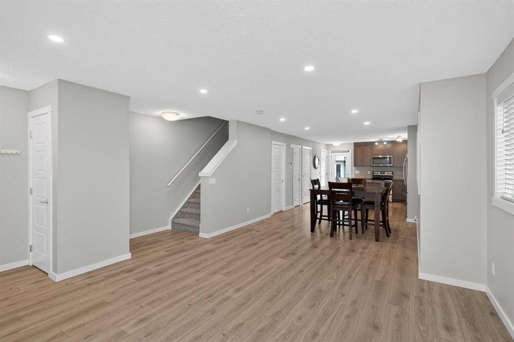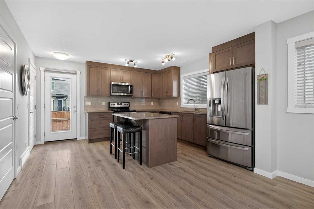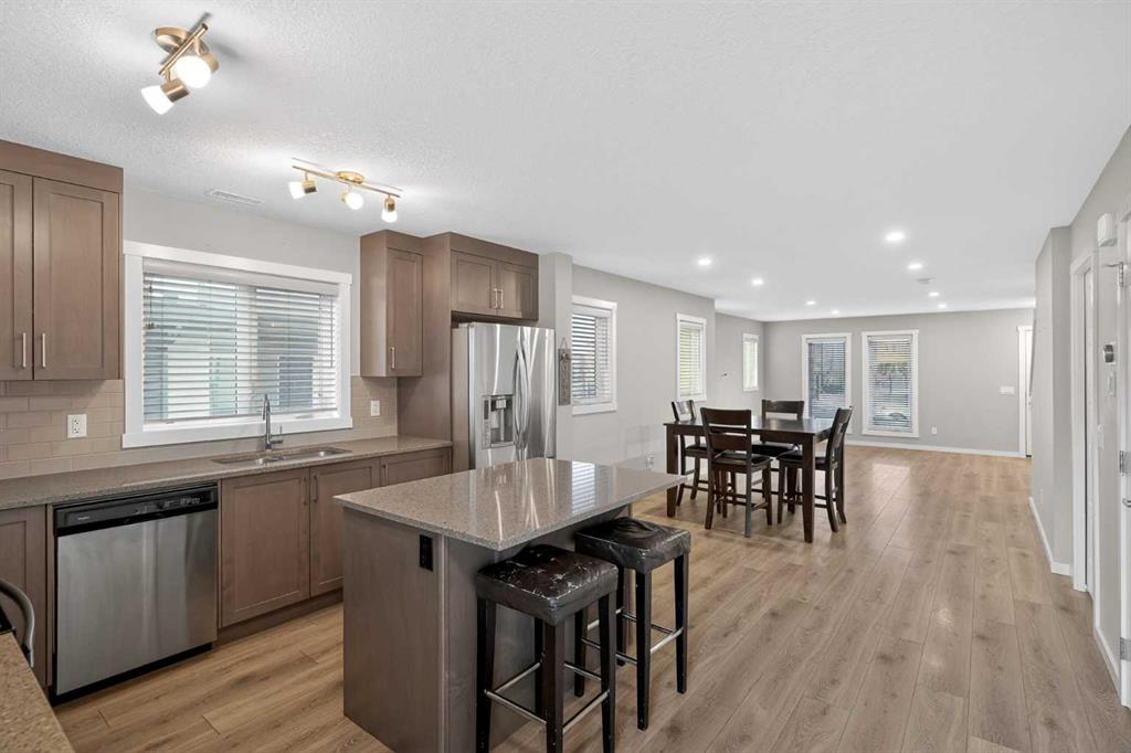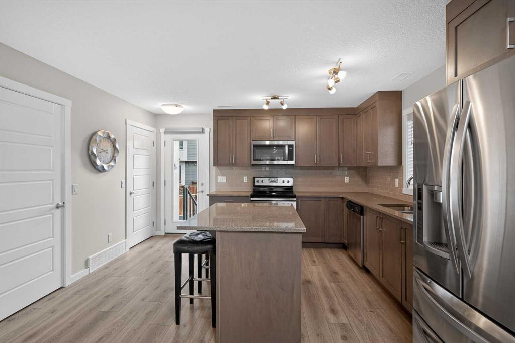 Welcome to Zen Urban District in Seton. This home is truly one of the most unique offerings in Calgary right now. A 600 square foot ROOF TOP PATIO WITH MOUNTAIN VIEWS sits atop a gorgeous END UNIT townhome that offers the best of urban living. Landscaped curb appeal welcomes you in to your open floor plan with beautiful vinyl plank floors that span throughout the main floor. Your living rooms is surrounded by large windows bringing in a ton of natural light and connects with your dining space and into your kitchen. Your chef inspired kitchen is adorned with granite counter tops, stainless steel appliances including a new fridge and stove as well as a large amount of cabinetry and drawers for storage. With the completely open concept you have the perfect space for entertaining or quiet nights at home with the family. A half bathroom finishes off the main level before heading upstairs. Your primary suite is huge and will easily fit a king size bed, additional bedroom furniture, and includes a walk-in closet and 4 piece ensuite. The second and third bedrooms are also a great size and overlook your backyard. A large 4 piece bathroom completes the 2nd level before heading the top level with flex room and your amazing rooftop patio. This rooftop patio is spectacular with the best of both worlds, one side facing east for morning coffee in the sun and one facing west with MOUNTAIN VIEWS and evening sunsets that will take your breath away. A fully fence backyard backing on to a small green space is something you do not find with townhomes often and gives you another space to enjoy the outdoors or for the kids to play. Seton is one of Calgary\'s most desired communities with great schools, parks, pathways and the worlds largest YMCA at your doorstep. Do not miss out on your opportunity to own this amazing home!