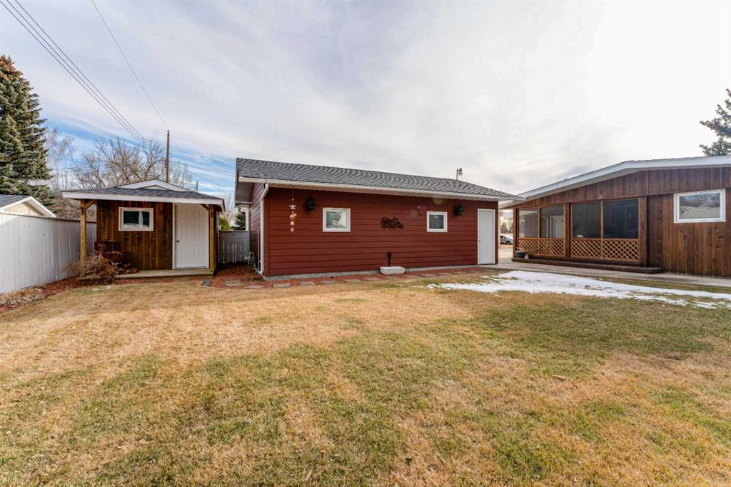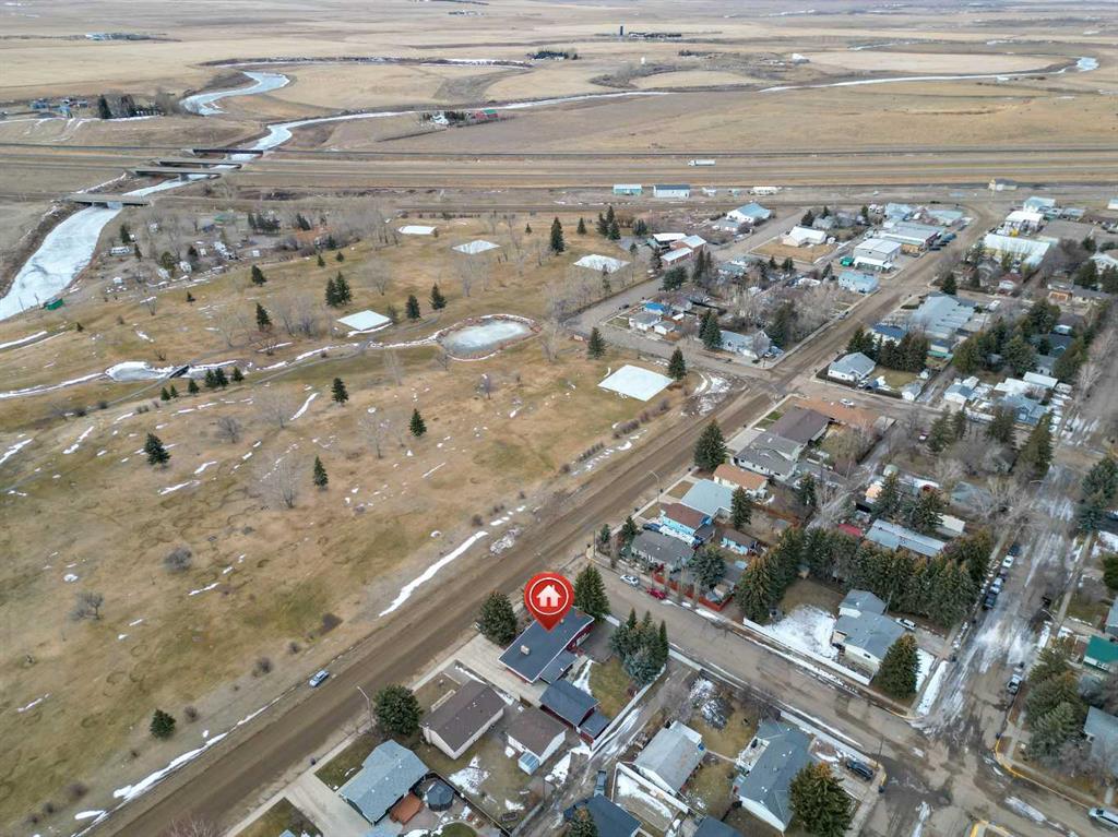 Looking for a beautiful home in a quiet community? This 3 bedroom, 2 bathroom, 3 level split is a meticulously maintained property throughout. The main level has spacious family area with gas fireplace, large country kitchen/dining area combo and mudroom. The Upper level has 3 bedrooms and 1-4pc bathroom. The lower level has a family room, 3pc bathroom and large laundry area which walks out to the beautifully landscaped backyard. The home has vaulted ceilings with both tile, carpet and beautiful oak hardwood flooring throughout. There is a single car attached heated garage along with an oversized detached heated garage with flooring that is water proof, scratch free and dint free. There is an enclosed patio area perfect for bbqing or entertaining on hot summer evenings. The lot is 100x120ft fenced, private, treed, underground sprinklers, large parking area for an RV with plug-in along with ample extra parking. This home shows pride of ownership from top to bottom. Located in the Southern Alberta community of Milk River AB, across from the golf course and close to hospital and down town amenities, with views of the Sweetgrass Hills A must to see.
