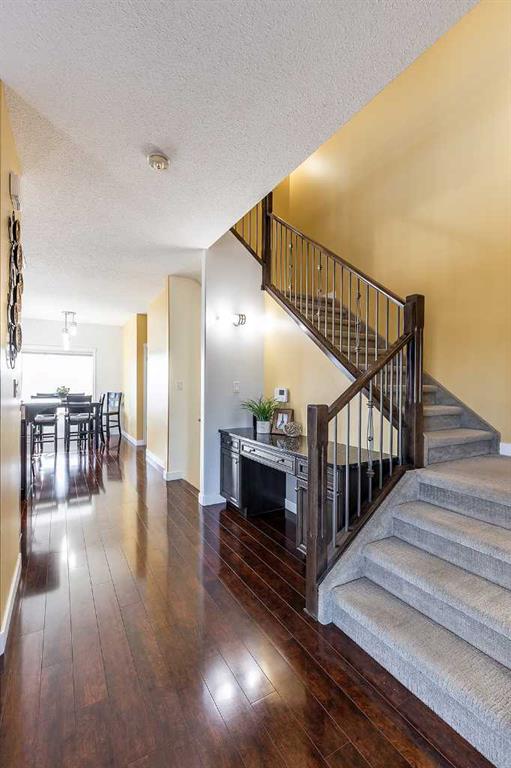 From the moment you arrive, this executive walk-out half duplex makes a lasting impression with its distinctive architecture, charming curb appeal, and welcoming covered front veranda. Step inside to a spacious entryway with a generous closet—ideal for busy households and everyday convenience. The main floor is thoughtfully designed for both comfortable daily living and effortless entertaining. At the front of the home, the inviting living room is accented by stylish acoustic panel features and modern LED lighting, creating a warm yet contemporary atmosphere. Toward the back of the home, the space opens to the kitchen and dining area—where the true showstopper awaits. Unforgettable river valley views provide a breathtaking backdrop and can be enjoyed from nearly every angle.The kitchen is both functional and inviting, offering ample cabinetry, granite countertops, and excellent workspace for the home chef. Step outside to the expansive covered deck, complete with sunshade and a gas line for your BBQ—an ideal setting to cook, dine, or relax while taking in the sweeping scenery. The main level also includes a convenient powder room, laundry area, and a smartly designed built-in desk with granite countertop, tucked neatly into a functional workspace nook. Upstairs, the primary suite is a true retreat featuring a walk-in closet, a spacious ensuite with heated floors, and its own private balcony, perfectly positioned to take in beautiful sunrise views and start your day with morning coffee. A versatile bonus room sits between the bedrooms, ideal for a family room, home office, or play space. The second generous bedroom also offers a walk-in closet and is serviced by a full 4-piece bathroom. The fully developed walk-out basement adds even more living space, featuring a comfortable family room, dining area with fridge and coffee bar, a large additional bedroom, a 4-piece bathroom, and ample storage. From here, enjoy direct access to the fully fenced and landscaped backyard with underground sprinklers, as well as the attached garage and large driveway conveniently located off the alley. Bonus Value: This home is being offered fully furnished, with the exception of a few staging pieces—providing a rare, turnkey opportunity for buyers seeking a seamless move-in experience. Offering exceptional comfort, thoughtful design, and views that simply can’t be replaced, this is a truly unique property. Homes like this don’t come along often—schedule your private showing today.