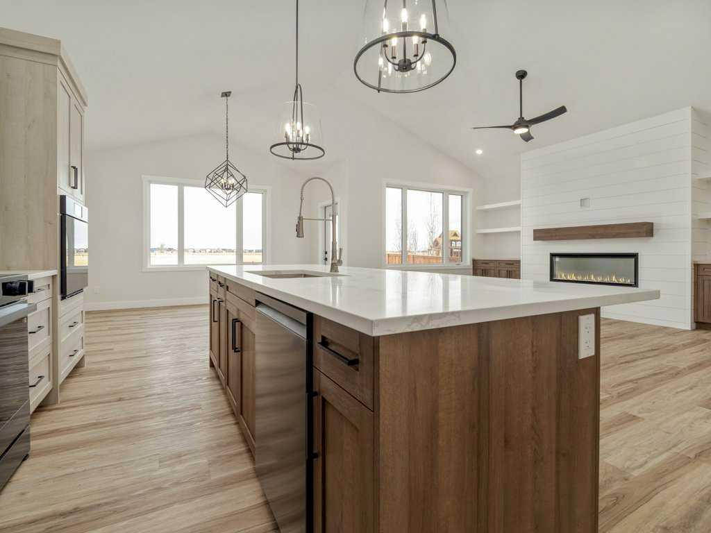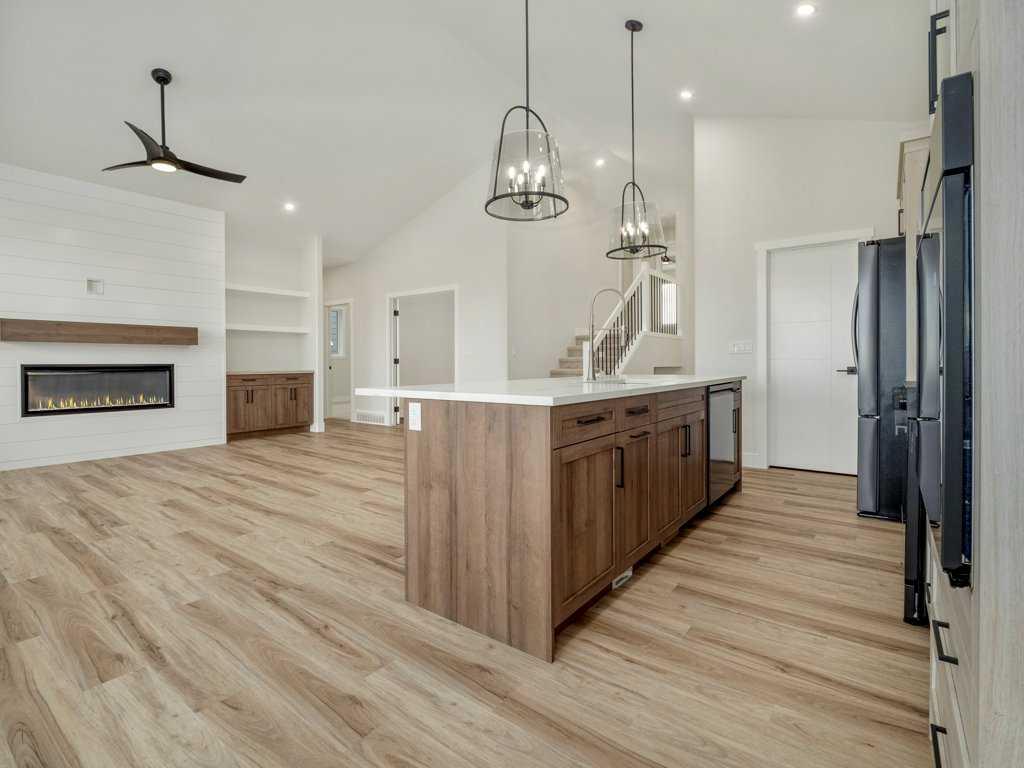 Discover exceptional living in this brand-new, fully finished five-bedroom, three-bathroom executive residence in the sought-after community of Southgate built by the amazing Grizzly Ridge. Offering a rare TRIPLE CAR ATTACHED GARAGE this home provides unparalleled space for vehicles, recreation, hobbies, or the ultimate private retreat—whether a workshop, collector’s showcase, or future golf simulator lounge. The main level spans an impressive 1,398 sq. ft., thoughtfully designed for both refined entertaining and comfortable daily living. A soaring vaulted ceiling, expansive windows, and a gorgeous gas fireplace with custom built-in shelving create a bright yet inviting great room atmosphere. The spacious eat-in kitchen and dining area seamlessly connect to the future rear deck, ideal for effortless indoor-outdoor gatherings. There is also a versatile flex room offers the perfect setting for a private office, library, or playroom, while two generous bedrooms and a beautifully appointed four-piece bath complete the level. Privately positioned on the upper floor, the primary suite is a true retreat boasting an impressive 717.37 sq. ft., featuring a spa-inspired ensuite with tiled glass shower, freestanding soaker tub, double vanity, and walk-in closet, all elevated by elegant tray-ceiling detailing and designer lighting. The fully developed lower level (1213.78 sq. ft.) extends the home’s lifestyle appeal with a spacious recreation area, wet bar, and a second fireplace with custom built-ins—perfect for entertaining or relaxed family evenings. Two additional bedrooms and a luxurious five-piece bathroom provide ideal accommodation for guests, teens, or multigenerational living. With no additional new construction for Grizzly Ridge anticipated until later this year, this move-in-ready home represents a limited and highly desirable opportunity to secure brand-new luxury in one of the area’s most coveted neighborhoods.