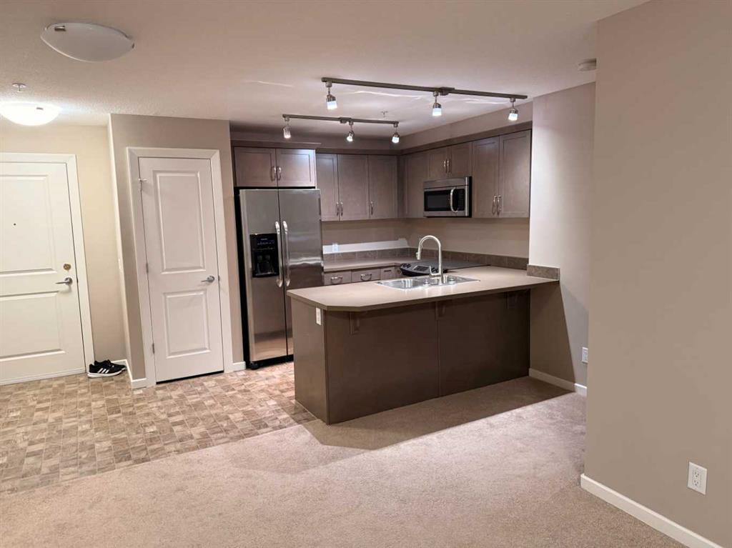 Pet-friendly main floor 2 bedroom 2 bathroom plus den/flex unit nestled in the quiet and desirable kincora summit, a well-managed complex within one of nw calgary’s most amenity-rich communities. this bright open-concept layout features a spacious kitchen with stainless steel appliances, maple shaker cabinetry, ample counter space, and an extended eating ledge open to the living room, complete with its own a/c unit for year-round comfort. the garden door leads to a covered patio, perfect for morning coffee or evening relaxation. the primary bedroom offers a generous layout with a walk-through closet leading to a private ensuite bathroom, while the second bedroom is located on the opposite side of the unit, ideal for roommates or guests. a versatile den/flex space provides excellent options for a home office, fitness area, or additional storage. a full 4-piece bathroom and in-suite laundry complete the interior. this unit includes one heated underground parking stall with extra storage conveniently located directly in front of the parking space, plus a dedicated bike storage area. enjoy quick access to yyc airport, symons valley road, shaganappi trail, and stoney trail, with nearby shopping and services at creekside, beacon hill, and sage hill, as well as parks, pathways, transit, and everyday conveniences just minutes away. an excellent opportunity for first-time buyers, downsizers, or investors seeking comfort, functionality, and location.