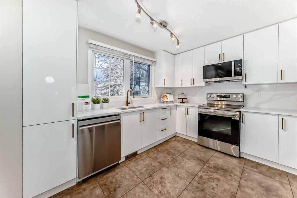 Check out our 24/7 Virtual Open house. Warm elegance and natural light infuse this gorgeous Point McKay townhome with sunshine and style. Featuring beautiful design and tasteful renovations, this stunning, move-in-ready home is sure to impress. A spacious foyer invites you inside, shared with the entry from the single-attached garage. As you step up into the living room, full-height windows face east to give the area an extraordinarily bright and airy feel. The original wood fireplace was sealed, yet it remains a cozy decorative focal point. Glass-paned doors step out to the deck, merging your indoor and outdoor living spaces. As the vaulted ceilings draw your eye up, the open architecture and wood railings evoke loft vibes as you head to the dining area, giving you a bird’s eye view of the entire level. Updated lighting elevates the aesthetic, and rich-toned hardwood adds depth. In the remodeled kitchen, sleek white cabinetry and quartz counters pair with new stainless appliances and chic gold accents for an upscale ambiance sure to inspire your culinary ideas. A breakfast nook has west-facing windows that take in the sunset skies. The powder room was refreshed in the same high-end materials as the kitchen. Upstairs, the primary retreat is peaceful and generously appointed. Dual closets are ideal for a couple, and the ensuite has been luxuriously redone. Quartz and gold in the vanity, and attractive tilework in the shower bring the sophisticated tone into your personal space. This storey includes two more large bedrooms, and the main bathroom has also had a makeover. Downstairs, the finished basement is great for your library, home gym, or an office. In a clever use of space, one closet holds the new laundry machines, one has cold storage, and the third a tidy utility area. Outside, the deck offers plenty of room to grill, dine, and lounge, and the paved yard is set with raised planters making it both low maintenance and lush during the growing season. The gate opens into a green space edged with mature trees, and the local tennis courts. The river pathway is also in sight, providing a setting for your active lifestyle right at your doorstep. Cyclists can be downtown in about the same time as car commuters, which isn’t long as this area is quite central. The community attracts medical professionals and educators due to the proximity to both Foothills and the Children’s Hospital, as well as the University of Calgary. Nearby amenities include the Riverside Club and Riverside Spa; within walking distance you can also head to some area favourite eateries like the Lazy Loaf and Kettle or LICS Ice Cream. Trendy Kensington is only a short drive for some of the top restaurants in Calgary, and primary routes give you easy access to any area of the city. Plus, the location of this neighbourhood also gives you a quick escape should you want to head west into the mountains for camping, hiking, and snow sports.