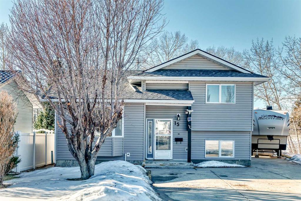 DRIVE A LITTLE SAVE A LOT!! Welcome to 15 23rd Avenue Close where you will find this 4 level split home that is nestled in a quiet close that hosts green space out front, as well as a family park with playground in the back. This 4 bedroom, 3 bathroom home has a great floorplan that provides for space for everyone with it\'s multi-level layout. Upper level is where you will find 3 of the 4 bedrooms with the master bedroom featuring a 3 pce (shower) ensuite and walk-in closet. Two other bedrooms and a 4 pce bathroom round out this level. The living room and kitchen with dining area are all on the main level and flow well for entertaining and family gatherings. The finished lower level with its good sized windows is where you will find the family room, 4th bedroom and 3 pce bathroom as well an office. The basement will provide with all the storage space your family should need as well as the laundry pair, utility room and handy walk up basement. Outside does not disappoint with its double garage with propane heater, long driveway that accommodates a larger RV with room to spare for more parking, 14 X 12 deck, nicely landscaped yard complete with garden and some perennials. This home has been tastefully decorated in warm contemporary tones and has seen numerous updates over the recent years such as shingles, siding and eavestrough on the house, shingles on the garage, most windows, appliances and furnace. The K-12 school is out the front door to the waking path and across the street! Bowden is a quaint community with an ideal location that is an easy commute to Innisfail, Olds, Red Deer and on the door step of many recreational areas such as Red Lodge Provincial Park which is well known for it\'s camping and floating down the river on those hot summer days soon to come! Numerous Eateries, Arena, Library, Pharmacy, Grocery Store, Post Office, Seniors Centre, Liquor stores, Skate Board Park....yes, things are thriving in this community! This one is move in ready and possession is negotiable...your search is over!!