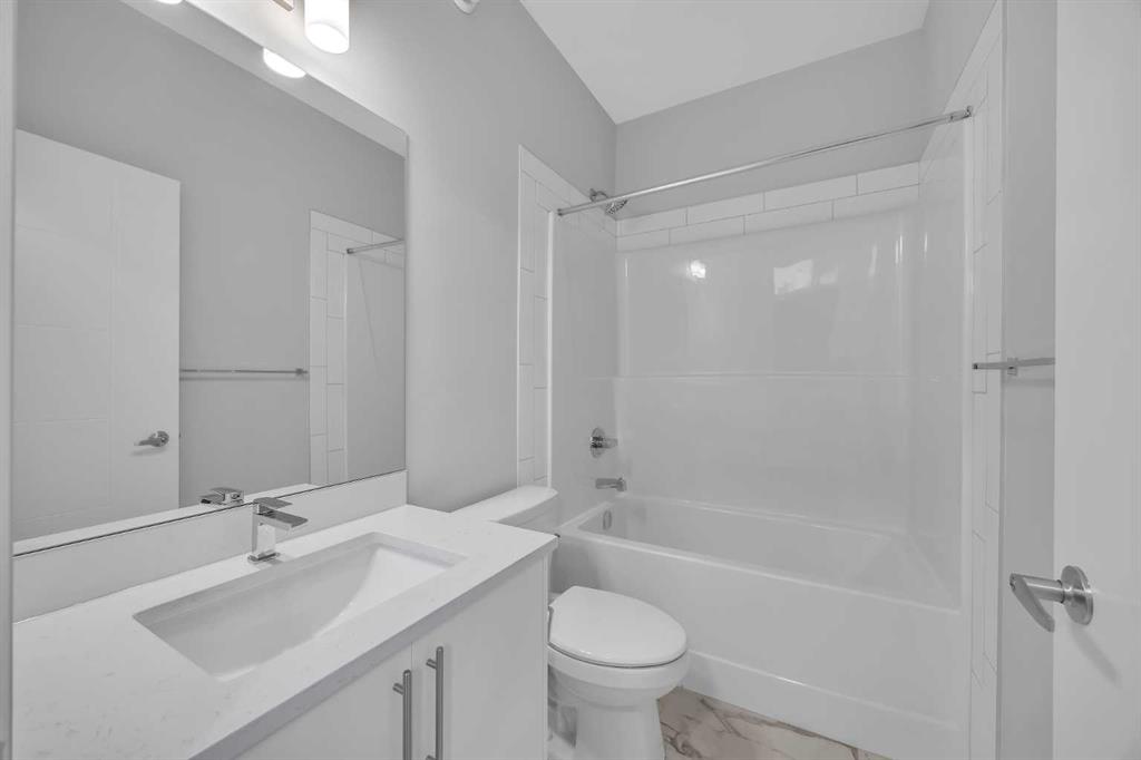 Welcome to The Edward by Partners Homes, a brand new quick possession in Logan Landing featuring a rare fully developed two-bedroom, two-bathroom legal basement suite with a private side entrance. Designed with flexibility in mind, this home offers an exceptional opportunity for multi-generational living or meaningful rental income in a growing Calgary community. The main level is bright and open, anchored by a spacious kitchen with a large central island, generous storage, and clean modern finishes that feel both timeless and functional. The dining and living areas flow seamlessly for everyday comfort and easy entertaining. At the front of the home, a versatile flex room provides the perfect space for a home office, playroom, or hobby area, while a full main-floor bathroom adds everyday convenience. Upstairs, the primary bedroom is a true retreat, complete with a walk-in closet and a private ensuite featuring dual vanities. Two additional bedrooms, a generous bonus room, and upper-level laundry round out a layout that works beautifully for families. What truly sets this home apart is the legal basement suite. Unlike the typical suite layout, this one offers two bedrooms and two full bathrooms, creating a unique level of privacy and livability for tenants or extended family. With its own kitchen, comfortable living area, separate mechanical room, and private entrance, it functions as a complete secondary home within the property. Located in Logan Landing, surrounded by parks, pathways, and access to the Bow River, The Edward offers the perfect balance of outdoor lifestyle and everyday convenience. Whether you’re looking for a mortgage helper, space for family, or a turn-key investment, this is a rare suite opportunity in a brand new community.
