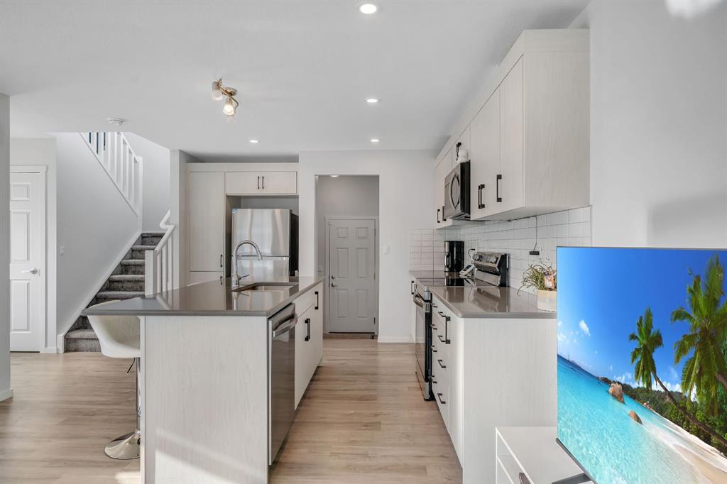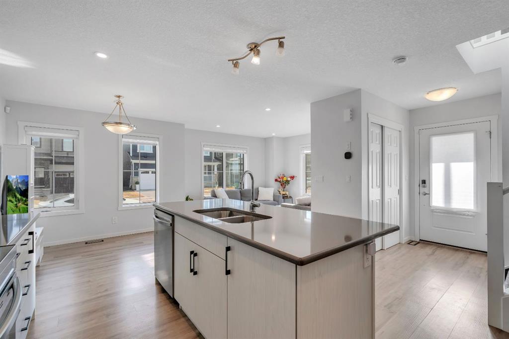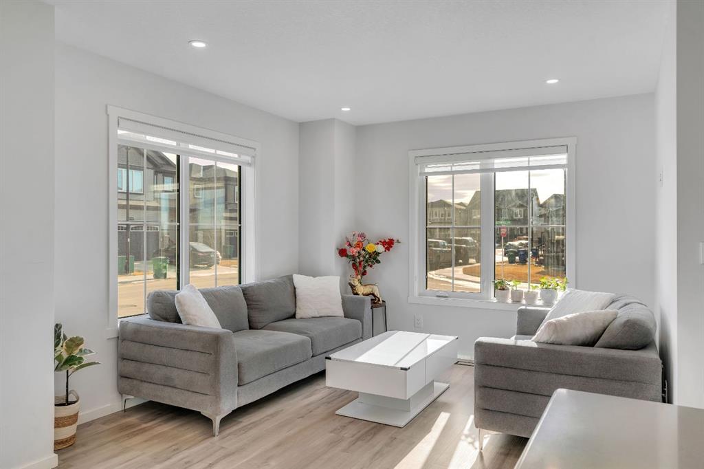 Excellent Opportunity!Prime Corner Lot Location! Welcome to this stunning NO CONDO FEE townhouse perfectly positioned in the family-friendly community of Southwinds, Airdrie offering space, upgrades, and income potential all in one smart package. PREMIUM FARMHOUSE ELEVATION | 4 BEDROOMS | 3.5 BATHROOMS | FINISHED BASEMENT (ILLEGAL SUITE) | 2000+ SQ FT TOTAL LIVABLE SPACE | FRONT DOUBLE ATTACHED GARAGE | HUGE CORNER LOT | $50K+ UPGRADES | 2025 OCCUPIED | WALKING DISTANCE TO AMENITIES. From the moment you arrive, the charming curb appeal and premium corner positioning set this home apart - providing added privacy, extra natural light, and no neighbours on the sides. Step inside to a bright, open-concept main floor designed for modern living. The upgraded chef-inspired kitchen features quartz countertops, stainless steel appliances, good sized island, sleek cabinetry, and a layout that flows seamlessly into the dining area and inviting living room - perfect for entertaining or everyday comfort. A convenient powder room, mudroom, and attached double garage enhance functionality. Upstairs, upgraded railings lead to a serene primary retreat complete with a private deck, spacious walk-in closet, and 4-piece ensuite. Two additional generous bedrooms, a full bathroom, and an upper laundry room with upgraded washer and dryer complete the level. The fully finished basement adds incredible flexibility with a 1-bedroom illegal suite setup featuring a wet bar (fridge, hot plate, microwave, and hood fan) and full bathroom. The shared main entrance leads directly to basement stairs near the front, creating natural separation and added privacy. Loaded with approximately $50,000 in upgrades including quartz counters, LVP flooring, upgraded carpet, wooden stair spindles, knockdown ceilings, and a finished basement - this home blends style, practicality, and smart value.Outside, enjoy the landscaped front yard and large porch while being steps from parks, pathways, pond views, schools, shopping, dining, and everyday conveniences. Quick access to Calgary via 40th Avenue adds even more location appeal. Location + Layout + Income Potential = Rare Find. Book your showing today - opportunities like this don’t last.