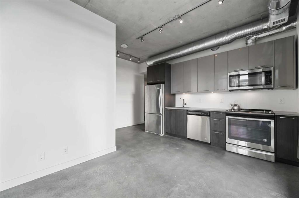 Welcome to this stunning 2-bedroom, ultra-modern corner condo offering breathtaking panoramic views and an unbeatable inner-city lifestyle. Designed with both style and functionality in mind, this bright and spacious home features 9-foot ceilings, floor-to-ceiling windows, and a spectacular balcony perfect for enjoying Calgary’s skyline and unforgettable sunsets. From the moment you enter, you’re greeted by unobstructed views of the Calgary Tower, Central Library, and Stampede Grounds, creating an instant wow factor. The open-concept layout is flooded with natural light and showcases contemporary finishes throughout, including a sleek kitchen, modern bathroom, and thoughtful design that maximizes both space and comfort. The southwest exposure enhances the airy feel, while the partially covered balcony allows for year-round enjoyment. Additional highlights include concrete construction for superior soundproofing, in-suite laundry, a spacious foyer, central storage closet, titled heated underground parking, and assigned storage. The building offers exceptional amenities, including a rooftop social lounge and patio ideal for watching Stampede fireworks or enjoying views of the Bow River and downtown skyline, as well as a bike storage room with repair station and a dedicated dog wash. Ideally located on a quiet, low-traffic street yet steps from downtown, transit, river pathways, shops, restaurants, and entertainment, this move-in-ready home delivers the perfect blend of modern living, walkability, and vibrant urban lifestyle.