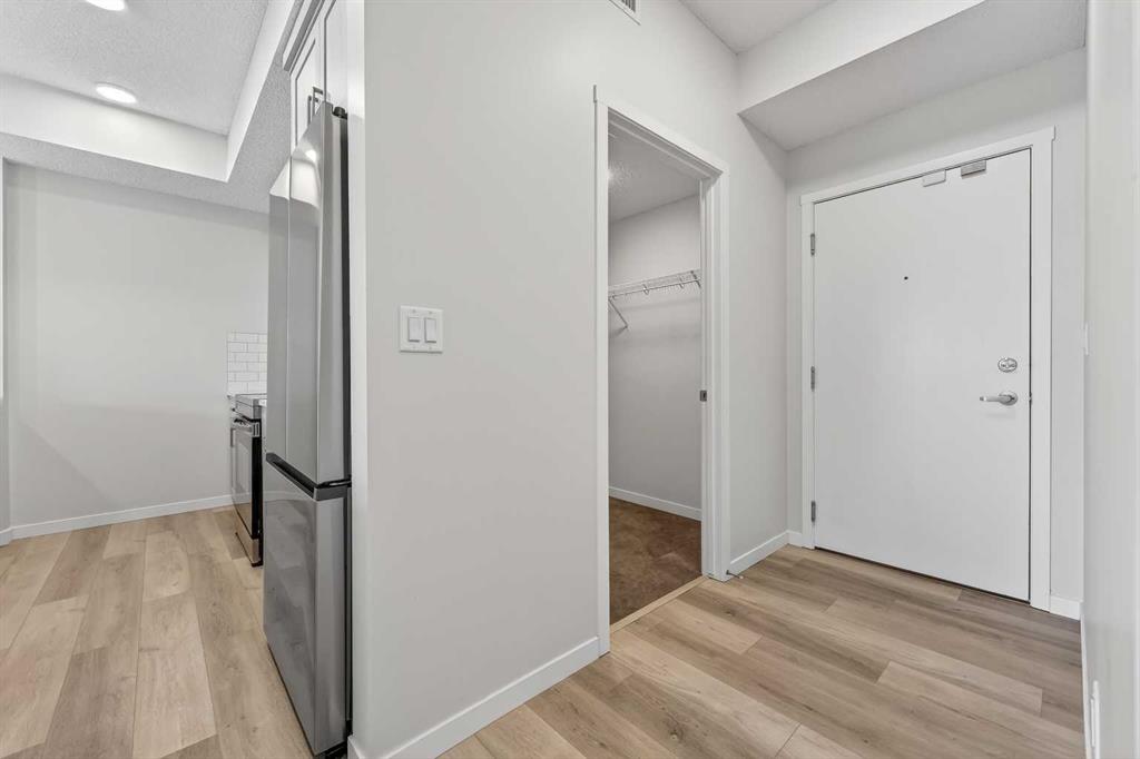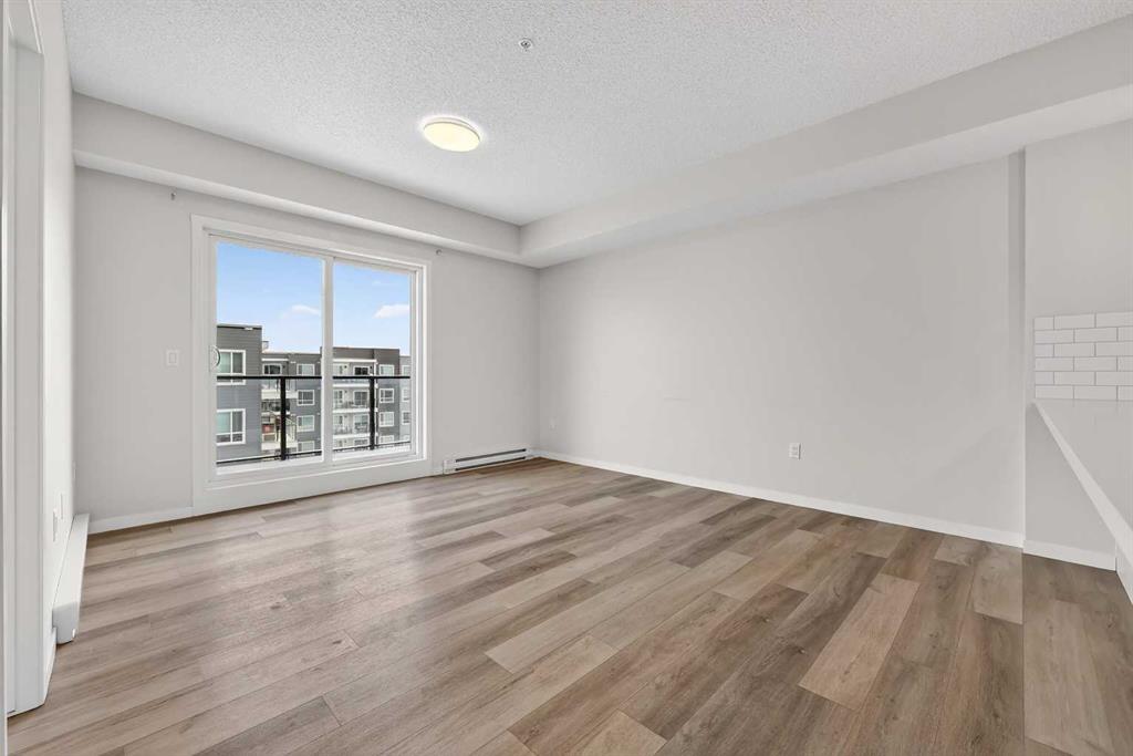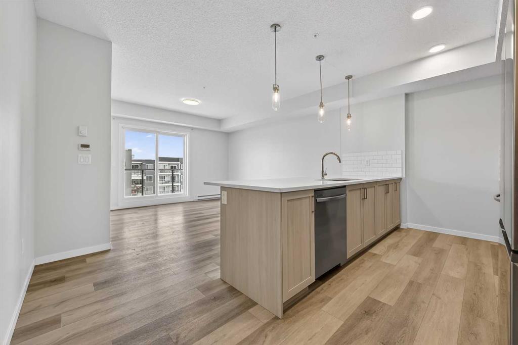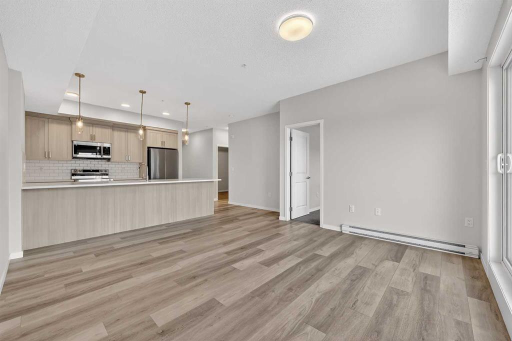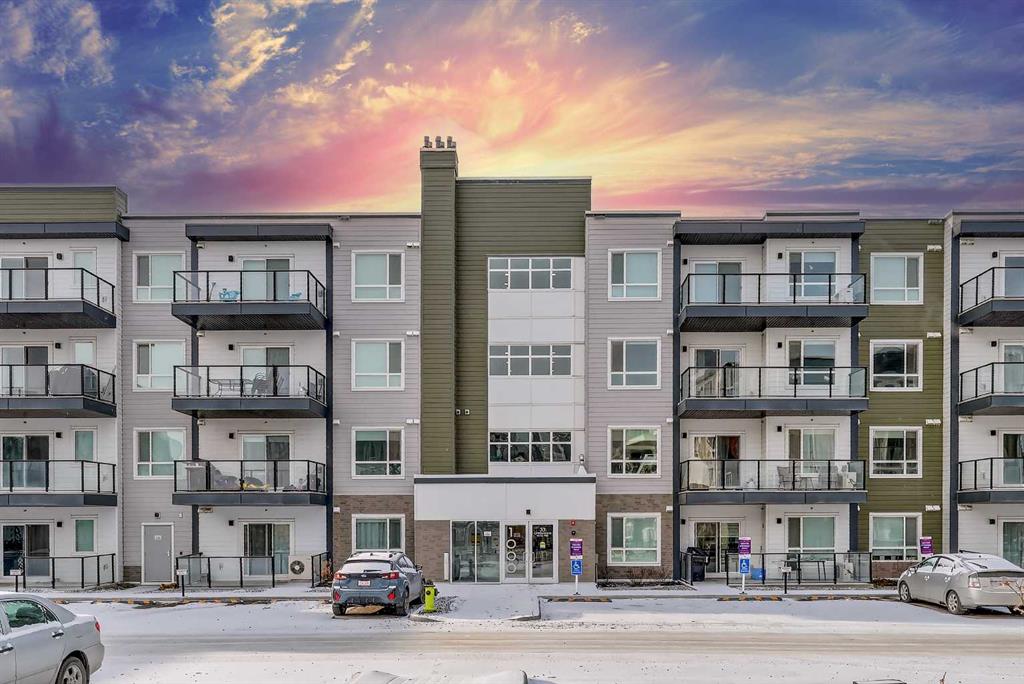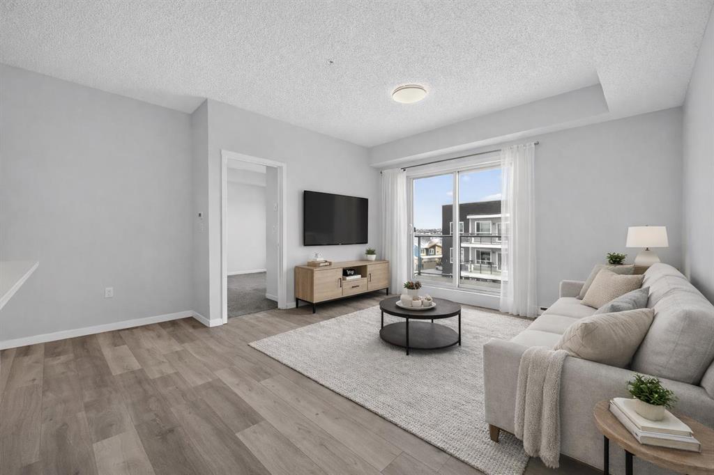 Welcome to this modern fourth-floor condo in the growing community of Carrington, built by Cedarglen in 2024. This bright and thoughtfully designed 2 bedroom, 2 bathroom unit offers approximately 780 sqft of well-used living space, ideal for first-time buyers, downsizers, or anyone looking for a low-maintenance lifestyle in a newer building. The open-concept layout features a stylish kitchen with quartz countertops, stainless steel appliances, ample cabinetry, and a large island that flows seamlessly into the living area. Large windows bring in plenty of natural light and lead out to an east-facing balcony, perfect for enjoying morning sun and fresh air with a bit more privacy and elevation than lower-level units. The primary bedroom includes a full ensuite and generous closet space, while the second bedroom is well-sized and conveniently located near the second full bathroom, making it ideal for guests, a home office, or roommates. Neutral finishes throughout make the space feel clean, modern, and easy to personalize. Located in a well-planned new community with easy access to parks, pathways, shopping, and major routes, this unit offers a great balance of comfort, convenience, and value in northwest Calgary.