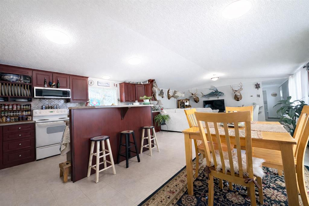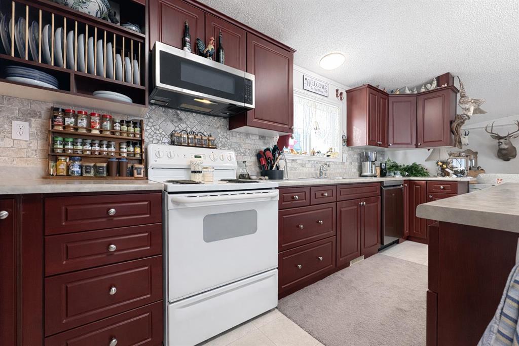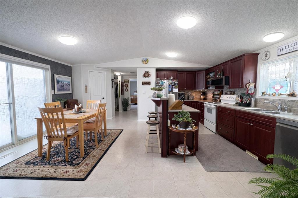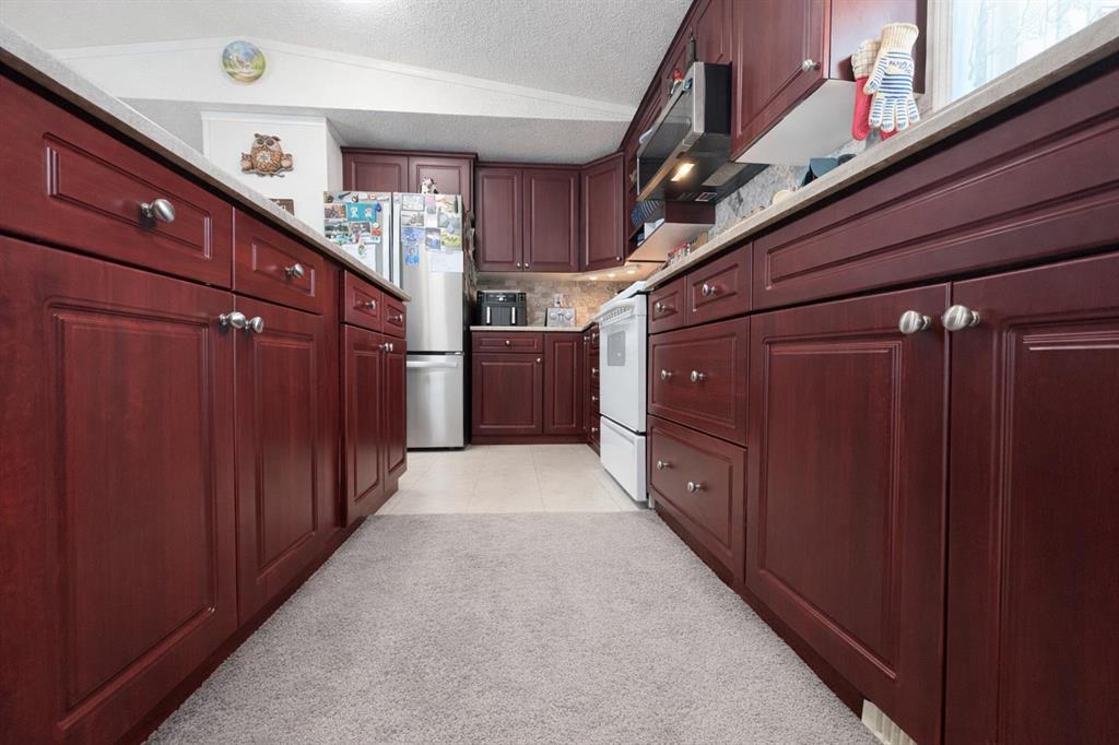 with a garden shed to match for all your outdoor tools. The home has vaulted ceilings, newer hot water tank, updating throughout the house with newer Fridge, Dishwasher, Washer & Dryer, new carpets throughout with new vinyl flooring in 2023, a new over the stove microwave in 2025. This home features 3 bedrooms and 2 bathrooms. The primary bedroom with an ensuite that is located in the back of the house for full privacy and the second and third bedroom is in the front. Your minutes away from all amenities for shopping, situated on its own lot in a highly convenient location, this well-maintained home offers comfort, functionality, and accessibility all in one. It\'s a well-run community that shows pride in ownership.