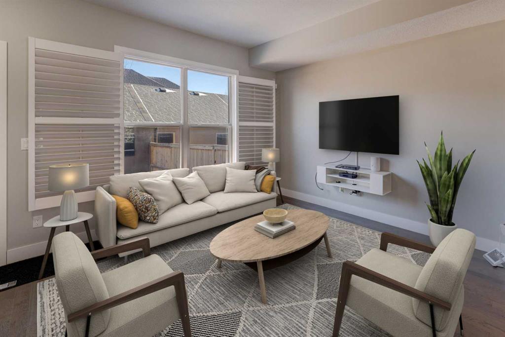 A rare find—townhome living with NO CONDO FEES! This beautifully upgraded home features 9-foot ceilings on the main floor, rich hardwood flooring, & quartz countertops on both the main & upper levels. The open-concept main floor offers spacious living & dining areas framed by elegant windows, while the upgraded kitchen is a true standout. Highlights include high-end Bosch stainless steel appliances, a large centre island with white quartz countertops, under-cabinet lighting, soft-close drawers & doors, & full-height cabinetry for a sleek, modern finish. A rear mud room keeps the family boots & coats organized while the beautiful living, dining & kitchen spaces are perfect for entertaining & family living. Upstairs, hardwood flooring continues throughout, leading to two generously sized bedrooms, each with large closets & custom built-in organizers. The ensuite bathroom is finished with quartz countertops & upgraded counter-to-ceiling mirrors, while the second full bathroom features quartz counters & a tub/shower combination. A conveniently located upper-level laundry room completes this floor. The fully developed basement adds exceptional versatility, offering a flex space ideal for a bedroom, gym, or home theatre, along with an additional full bathroom & abundant storage. Outside, enjoy your private, low-maintenance backyard with stone patio, plus a double detached garage. Additional upgrades include enhanced faucets, lighting, & interior doors, 2.5-inch plantation shutters throughout, air conditioning, new washer & dryer (2025), new hail-resistant shingles, eavestroughs, & downspouts (2025). Ideally located steps from pathways, playgrounds, grocery stores, restaurants, coffee shops, banks, & more, this exceptional home truly checks every box. A must-see!