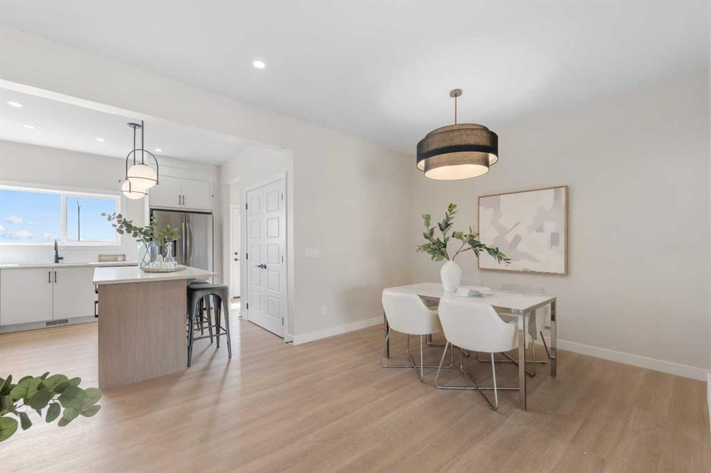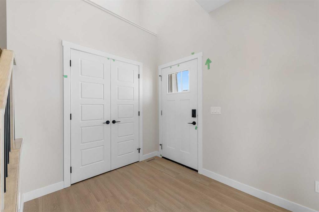 ** Brand New Home built by Genesis Homes Ready for Summer 2026 ** The Amber | Stunning Open Floor Plan | Open to Below Ceilings | Top of the Line Finishes | Sparkling Kitchen | Quartz Countertops | Stainless Steel Appliances | Kitchen Island | Barstool Seating | Pantry | 50\" Electric Fireplace | Wide Plank LVP Flooring | Recessed Lighting | Expansive Living Space | Main Level Flex Room | Upper Level Bonus Room | Upper Level Laundry | 3 Sizeable Bedrooms | 2.5 Bathrooms | Plus Carpet Flooring in the Bedrooms | Unfinished Basement | 9Ft Basement Ceilings | Great Backyard | Alley Access | Steps Away from the Future Park. Welcome to your brand new 2-storey family home boasting 1,595 SqFt throughout the main and upper levels. Step inside to a foyer with open to below ceiling and views into the open floor plan main level. This home was designed with style and comfort at the forefront; wide plank LVP flooring, large windows, recessed lighting, high ceilings and more! The front flex room is ready for anyone with a work-from-home lifestyle or can easily be used as a day seating entertainment room. The great room is both spacious and comfortable plus has a stylish flare of a 50\" electric fireplace. Next are the kitchen and dining room. The kitchen is outfitted with a sparkling quartz countertop, stainless steel appliances, ample cabinet space and a centre island with barstool seating. The dedicated dining room is ready for you to enjoy all your family meals. At the rear of the home is a mud room with closet storage and a door to your back yard. The main level is complete with a 2pc bath. Upstairs you\'ll find 3 sizeable bedrooms all with plush carpet flooring. The primary bedroom has its very own 3pc ensuite bath and a walk-in closet. Bedrooms 2 & 3 share the 4pc bath with a tub/shower combo. The upper level hall laundry is every home owner\'s dream as its located steps away from all bedrooms! Downstairs, the unfinished basement is a blank canvas ready for your own personal design! The basement of this home includes rough-ins ready for a legal secondary suite subject to approval and permitting by the city/municipality with a separate entrance, & 9Ft ceilings. Outside is a great backyard to enjoy in the warm summer months. This home has rear lane access if you choose to build a detached double garage. Genesis Builders Group follows the First-Time Home Buyer GST/HST Rebate to eliminate the 5% GST on qualifying new homes (up to $1 million) for qualifying first time home buyers. Hurry and book a showing at this gorgeous brand new Genesis home today!