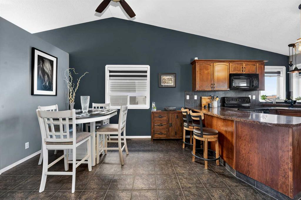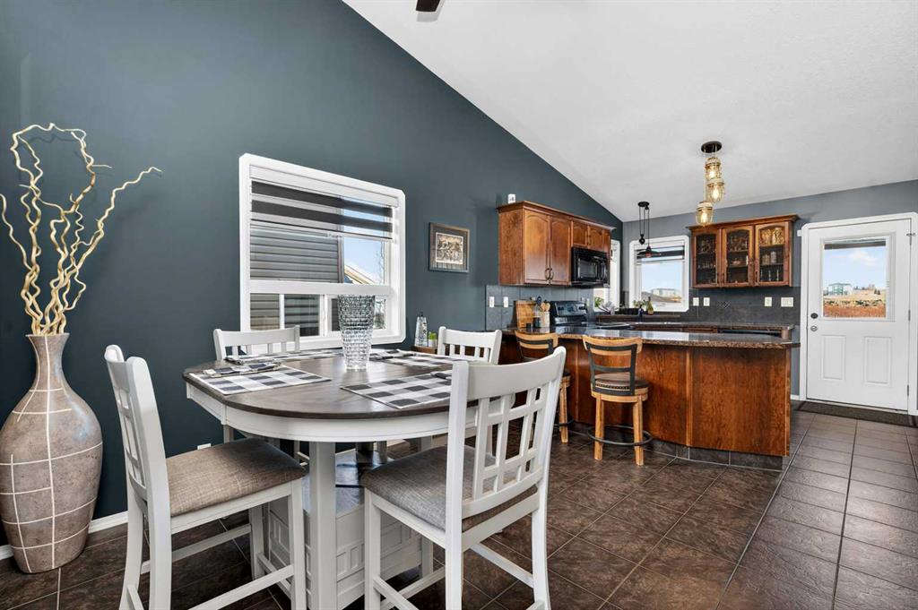 This fully finished bi-level welcomes you with a spacious entrance way. The living room is well designed with vaulted callings, gas fireplace & an oversized window for natural light. The bright U-shaped kitchen offers upgraded cabinetry, a generous pantry, and a convenient seating area perfect for quick meals or casual conversation. The main level includes two comfortable bedrooms and a 4-piece bathroom. Downstairs, the fully developed basement adds living space with two additional bedrooms, another full bath, and a family room ideal for movie nights or play space. Outside, the east-facing yard is designed for easy enjoyment with an oversized deck complete with built-in seating. The yard is landscaped, partially fenced, and offers rear parking with the option to add extra stalls or build a detached garage. With a playground and soccer fields just steps away, this location is perfect for active families. New shingles two years ago add peace of mind.