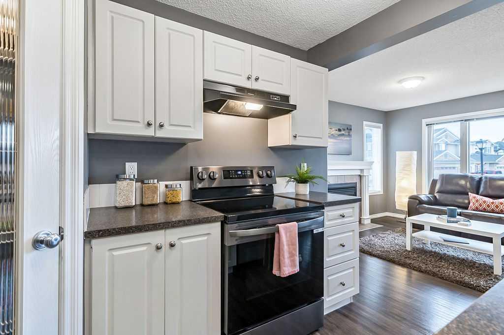Inside, the main floor boasts a bright open-concept layout with a cozy gas fireplace anchoring the living room, dining area, and a well-designed kitchen featuring a corner pantry, breakfast bar and new stove & microwave (2025). Upstairs, you’ll find three generously sized bedrooms, including a primary suite with a 4-piece ensuite, along with an additional 4-piece main bathroom.