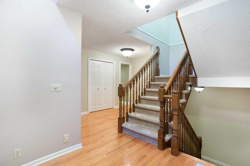 Fantastic opportunity to live in Woodridge Estates, ideally located in the established community of Woodlands and bordering Fish Creek Park. This spacious townhome features a pleasing and functional floor plan with 3 bedrooms and 3 bathrooms, a main-floor den, formal dining room, and a sunken living room filled with natural light. The renovated kitchen includes a breakfast nook and opens to a deck off both the living room and nook, perfect for enjoying the peaceful surroundings.
