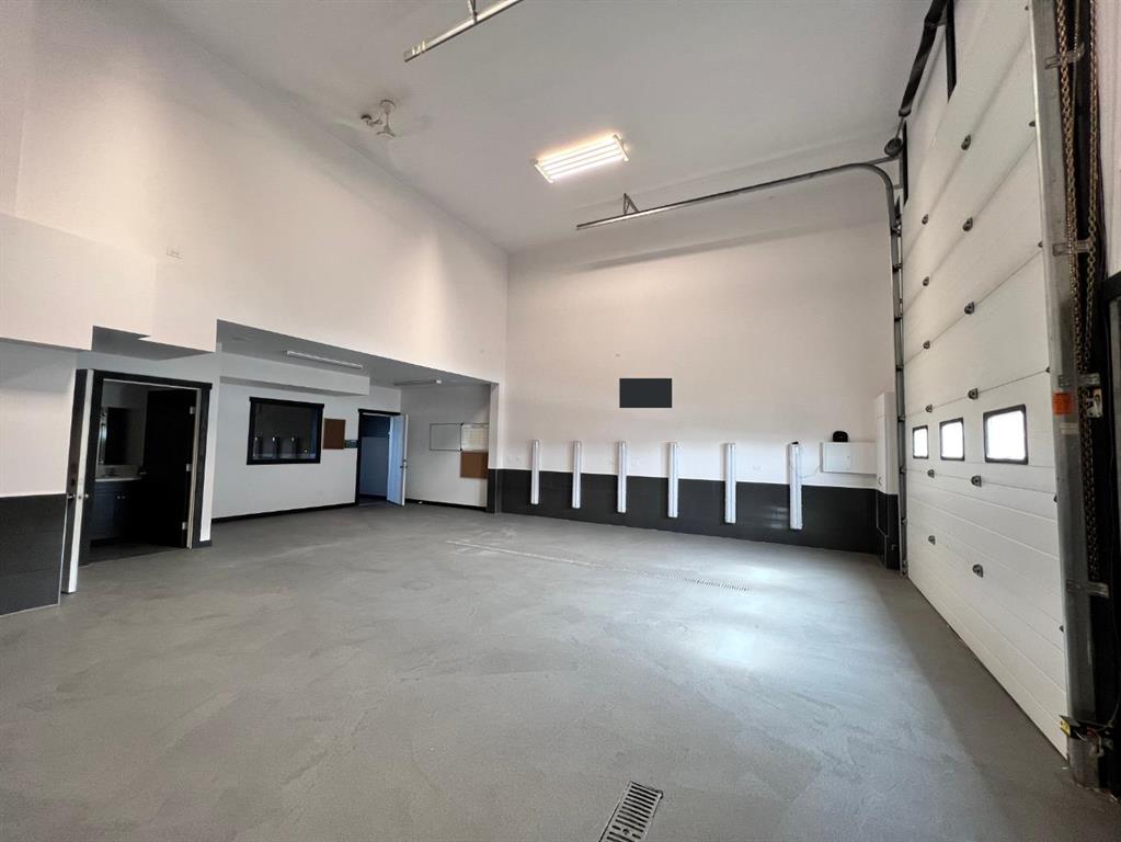 Well-maintained small bay located immediately off Highway #1 in Strathmore, offering excellent exposure and accessibility. The unit features a main-floor entrance with retail/showroom capability, an 18-foot clear warehouse ceiling, and an oversized drive-in overhead door suitable for a range of light industrial or commercial uses. The upper mezzanine includes a second washroom, creating a practical and comfortable office environment. Zoned C-HWY, allowing for a variety of highway-oriented commercial uses.