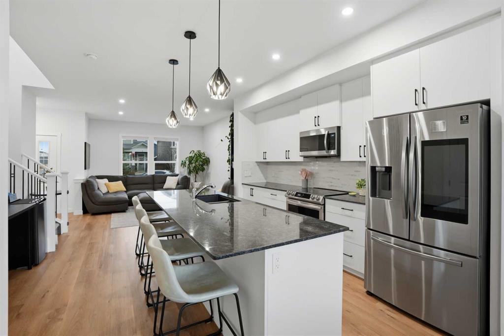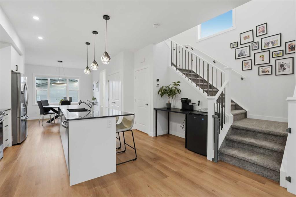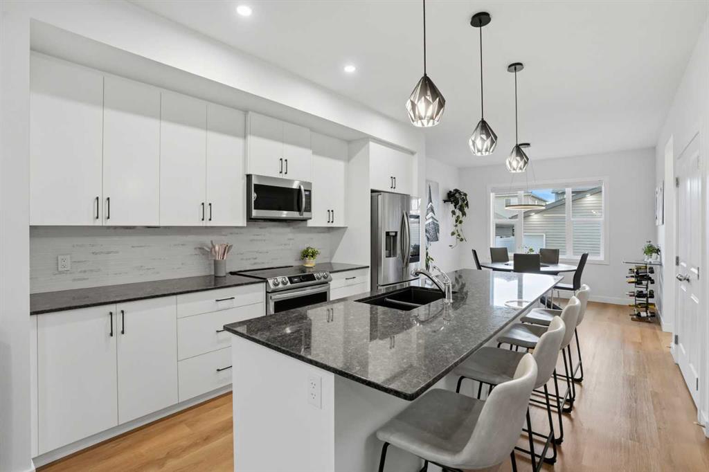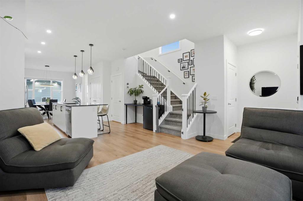 OPEN HOUSE: Sunday, Feb 8, 1pm - 4pm. Don’t miss your opportunity to own this exceptional home in Legacy! A RARE GEM: like-new, loaded with upgrades (including A/C), and situated on a truly OVERSIZED CORNER LOT offering a LARGE YARD where you can find a sunny spot at any point throughout the day! Inside, the home is flooded with natural light from the large windows, and the extra windows provided by the corner location! The main level feels bright and welcoming, with a lovely neutral aesthetic that will suit any new owner with ease, and natural wood-toned vinyl flooring that flows front to back. The kitchen is perfectly upgraded with a quartz counters, ceiling height cabinets, under-cabinet smart lights, upgraded stainless steel appliances including a SMART FRIDGE AND STOVE, a double-door pantry, and a great island for ample cooking/baking space and breakfast bar. The nook provides a flex space to suit your needs - currently used as a coffee bar. The main level is an excellent space to host, with an open flow from living room to kitchen and dining, and right out to the back patio! The stairwell to upstairs is like few others, with a large window and iron railing! Upstairs, you’ll find the convenient upper level laundry closet, with side-by-side washer and dryer, allowing space for hang drying and all your supplies! The spacious primary bedroom features a private en suite with quartz, and a large walk-in closet! There are two more additional bedrooms – one with an extra window and walk-in closet! A second full bath, also with quartz, completes the upper level. There are cellular shades throughout with thoughtful placement of blackout and top down/bottom up. A SEPARATE SIDE ENTRANCE to the basement allows for more flexible use of the basement space. While it is unfinished, there is underlay and carpet down (included!) to make great use of this space. The OVERSIZE DOUBLE GARAGE is heated and insulated, with its own 50 amp sub panel , overhead storage trusses, and pot lights lining the exterior that light up the yard! On the exterior, there are only two sides that are vinyl, while the front and the large, more exposed side of the home is smartly finished with cement fibre board! The vinyl fence is only two years old and includes a front gate, back gate, and side gate, with stone tiles leading to the side entrance. Legacy is a fantastic family community that offers excellent parks and playgrounds, restaurants, shopping, and all other amenities you may need close by.