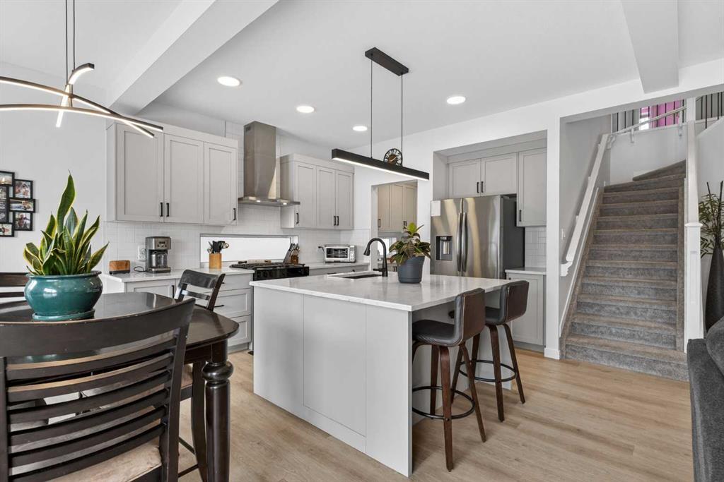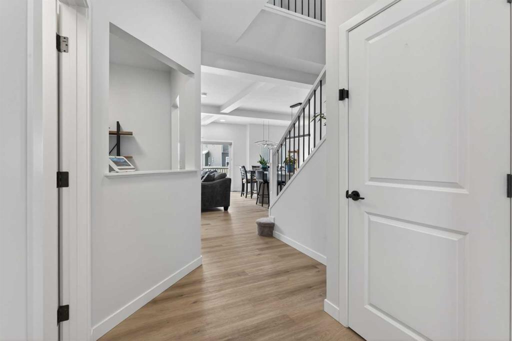 Looking for the perfect home for your family? Well you’ve found it in this beautifully crafted two storey in the popular Airdrie community of Bayside, located here on this quiet crescent within walking distance to neighbourhood parks, ponds & the canals. Built by McKee Homes for the original owners, this wonderful home enjoys luxury vinyl plank floors & quartz countertops, total of 4 bedrooms up, relaxing central air & fantastic outdoor space in the fully fenced & landscaped West backyard. With its 9ft ceilings & expanse of windows, you’ll love the bright & airy main floor with its gracious living room with remote-controlled gas fireplace & beamed ceilings, open concept dining room with views of the backyard, home office alcove & custom kitchen with centre island & quartz counters, butlers & walk-in pantry, ceramic tile backsplash & upgraded stainless steel appliances including a Samsung gas stove/convection oven. Upstairs there are 4 lovely bedrooms highlighted by the West-facing primary bedroom with walk-in closet & ensuite with quartz-topped double vanities, separate shower & soaker tub. Another full bathroom is shared by the other 3 bedrooms…2 of which have walk-in closets. A spacious bonus room & laundry room with GE steam washer & dryer complete the 2nd floor. The unspoiled lower level – with roughed-in bathroom plumbing & oversized windows, offers tremendous potential for future living space. Additional features include Clean Comfort HVAC system & triple-pane windows, natural gas line for your BBQ on the backyard deck, garage door opener with built-in camera, adjustable LED lighting throughout, Ecobee thermostat & upgraded SMART appliances. As one of Southwest Airdrie’s premier family communities, Bayside features 100km of paved pathways winding throughout the neighbourhood & along picturesque canals & ponds, with numerous parks & playgrounds for year-round activities. Nose Creek Elementary & W.H. Croxford High are both just minutes away, & with its prime location to Yankee Valley Blvd means all regional amenities are close-by (Chinook Winds Regional Park, Genesis Place, retail centers, Woodside Golf Course, etc) & you’ve got quick & easy access to the QEII to Cross Iron Mills, the airport & Calgary.