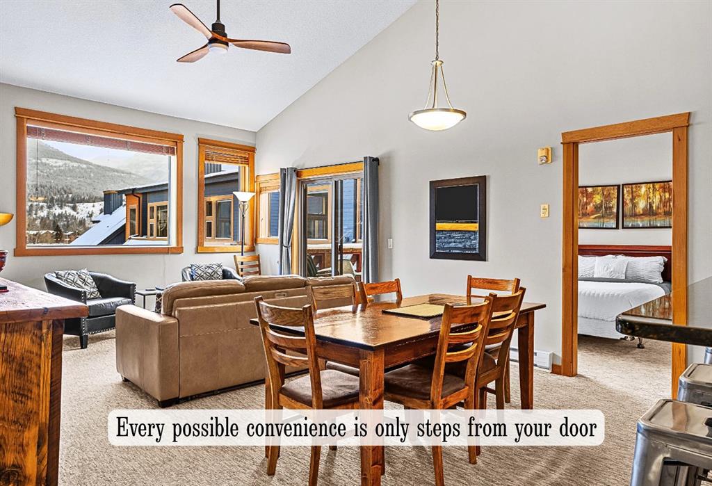 Located in downtown Canmore, every possible convenience is just steps away, including acclaimed restaurants, grocery stores, ski and bike shops, locally owned boutiques, artisan goods, and even your morning stop at Starbucks or Tim Hortons. Here, you can leave the cars behind in your warm and secure 2 car parking spot and immerse yourself in the rhythm of mountain town living.