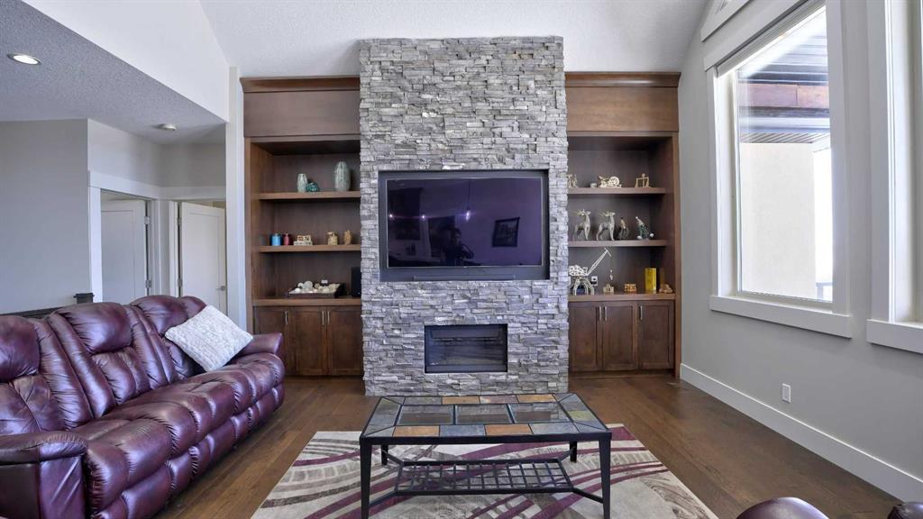 your goods from even the largest of grocery runs! The kitchen has been designed for you to master your culinary skills. Boasting a Capital dual fuel range with 25,000 BTU burners, unique pull out storage, a built in plumbed full size Meile combi steam oven and even a raised dishwasher for easy loading and unloading. The living room boasts vaulted ceilings and triple two story windows letting you marvel at the clear, unobstructed view of the Rocky Mountains and private pond. An oversized laundry room with quartz countertops and custom cabinetry give you a dedicated space for handling all the laundry, especially when the kids have been out playing in the raised treehouse. The unique connected walkthrough closet has more custom built-ins and plenty