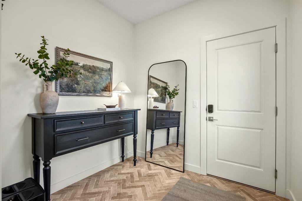 Experience the essence of luxury living in this exquisite home. Situated in the highly desirable community of Alpine Park. As you approach this residence on an oversized corner lot you will notice the great curb appeal, gemstone lights, and welcoming front porch. In like-new condition, this stunning custom-built home offers over 2,600sq. ft, an OVER SIZED TRIPLE CAR HEATED GARAGE, a South-facing fully landscaped yard with irrigation, and extensive upgrades throughout. The sophisticated design boasts soaring 10-foot ceilings on the main-floor. Highlighted by an expansive chef’s kitchen. Complete with ceiling-height shaker-style cabinets, soft-close doors and drawers, high-end upgraded appliances, and gorgeous stone counters. Around the corner is a separate coffee space, large pantry for additional storage, and mudroom leading to your convenient TRIPLE ATTACHED HEATED GARAGE with an additional bay for storage, EV ready rough-in and 220-amp service. There is direct access off the kitchen to your large low maintenance TREX deck and sun-drenched, South facing yard. The kitchen seamlessly transitions to the elegant well sized dining area with a floor to ceiling patio sliders leading to the deck creating a great indoor-outdoor space. Adjacent is the grand living room accentuated by a gas fireplace adorned with a wood mantle and millwork detail. The main level is completed with an office or playroom and a convenient powder room. As you head upstairs notice the airy open riser staircase and elegant railing. This opens to a generous family room creating a versatile space for relaxing, watching movies, or spending quiet evenings together. There are 9-foot ceilings throughout this level, which includes two well sized bedrooms, a 5pc main bath with stone counters, and a convenient upper-level laundry room with sink rough in, all situated away from the Primary retreat. The primary retreat serves as a tranquil sanctuary, boasting a tray ceiling detail, walk-in closet, and luxurious ensuite, complete with a freestanding soaking tub including MOUNTAIN VIEWS, a generously sized fully tiled shower, and a private water closet. The unfinished lower level is ready for your creativity with oversized windows, 9’ ceilings, bathroom and bar rough ins. Enjoy the comforts of air conditioning, custom drapes, designer lights, upgraded plumbing fixture, and triple pane windows. Easy access to the mountains, via Stoney trail, downtown 20 minutes away, and 5 minutes to Costco and shopping This estate home is a rare find with no neighbour beside you. Don’t miss this opportunity—schedule your private showing today or explore the virtual tour!