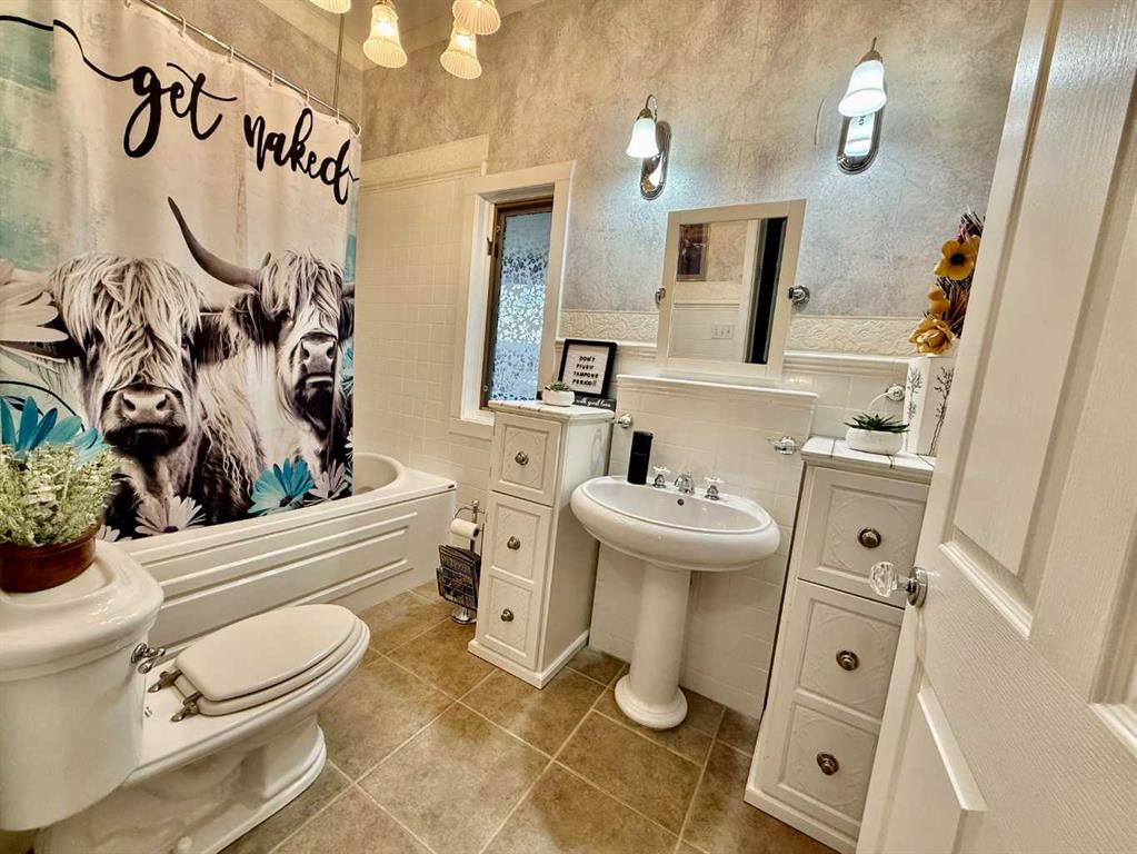Upstairs, you’ll find two oversized bedrooms (with a framed doorway to easily convert into three), along with a beautifully appointed bathroom featuring a soaker tub and walk-in shower—an ideal space for children or guests.