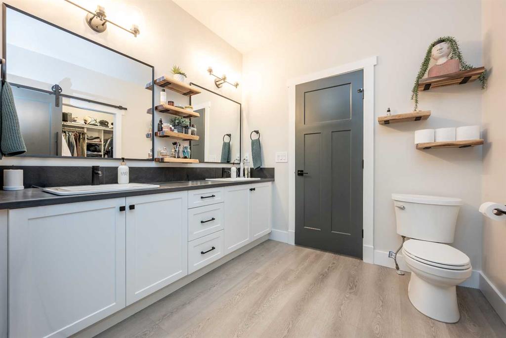 Elegant , Modern, Fresh, And Immaculate is the definition of this originally owned built by Unique Homes. It is like NEW but better as it has all the bells and whistles included central air , heated + finished garage, infloor heat in basement, coffee bar area, and enormous walk in pantry. Entry your home you will appreciate the sheer size of the entry way with built in bench. Heading up a few stairs to your main floor that welcomes you into your popular open concept between the kitchen , dining and living room. Kitchen hosts kitchen island with quartz counter tops, adequate cabinet + counter space, bar fridge, and wine storage space. Dinning allows for a table of any shape or size for all occasions. Living room has feature wall to ceiling with electric fire place with vaulted ceiling. Half bathroom of the kitchen great for guests while entertaining. To finish off the main floor is the prestige master bedroom with his and her sinks and spa like over sized shower and customer walk in closet. Heading upstairs you will find two large bedrooms and full bathroom. FInished basement with electric floor heat is huge with massive living , fourth bedroom, full bathroom, and incredible finished laundry room with counter top + cabinets, as well as finished underneath the stairs storage. Utility room has hot water on demand and high efficiency furnace with central air conditioning. Attached triple car garage is fully finished with garage heater, and extra coat closet. Back yard is fully fenced with two tiered composite deck with privacy walls and no rear neighbors. Down the road from your new home you will find a park wonderful for family gatherings. Book your viewing today as this home is a show stopper.
