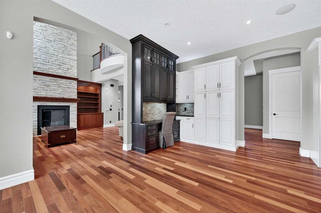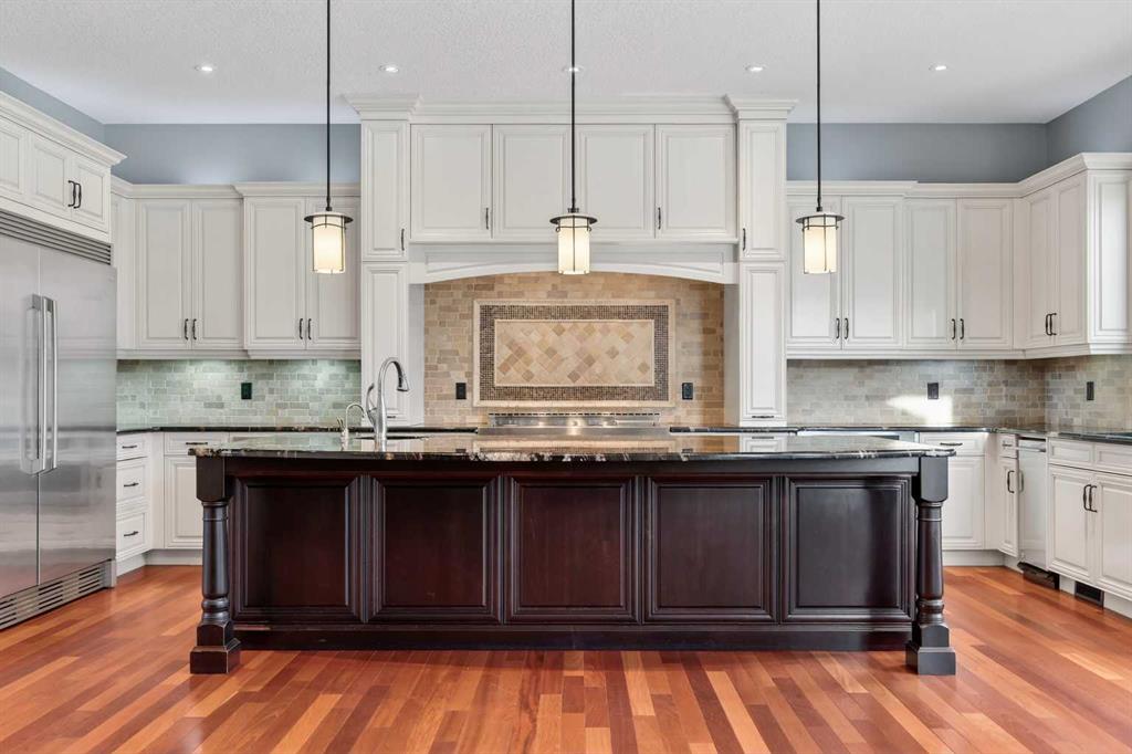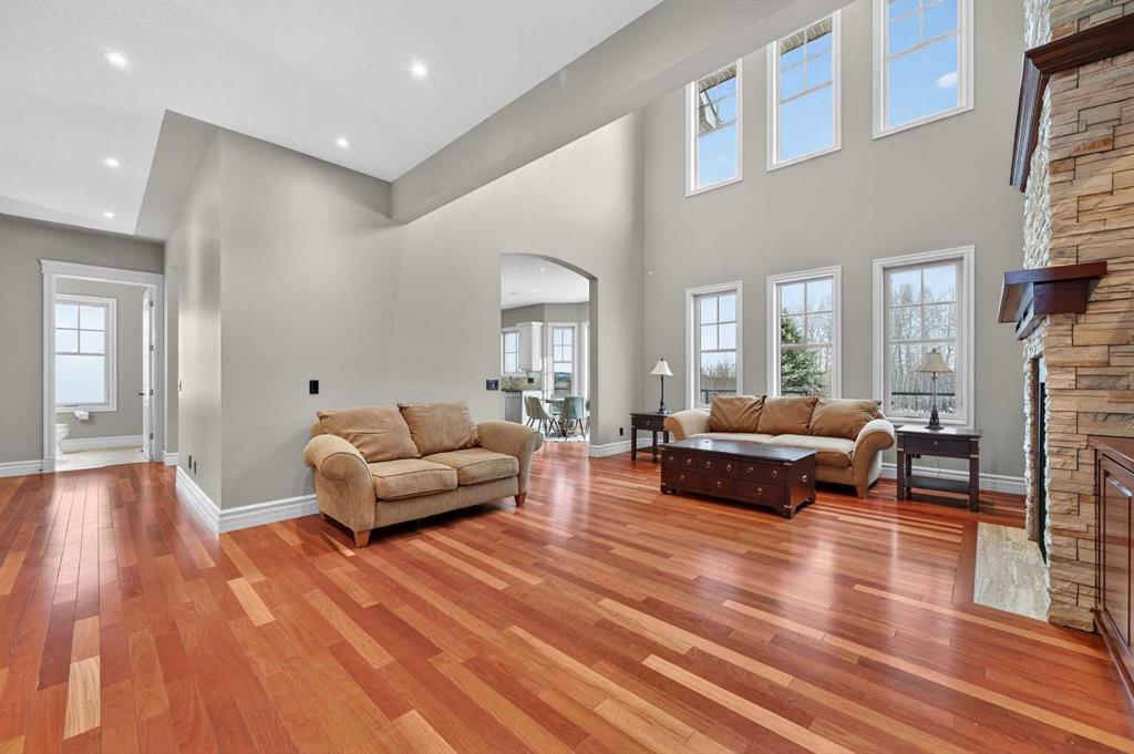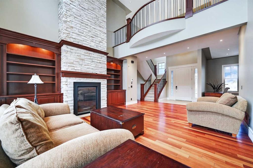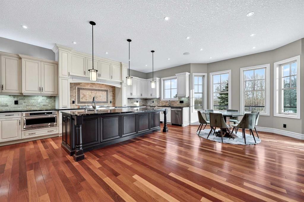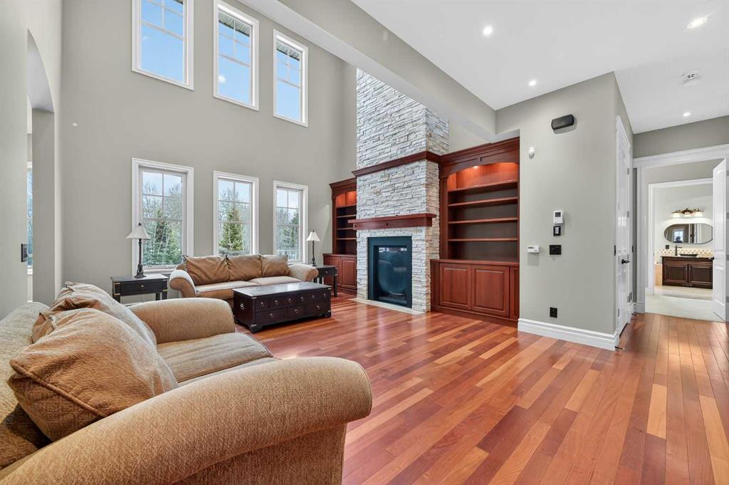 As you drive up your private lane, lined with mature trees and lush shrubbery, you arrive at a stunning, beautifully designed home. From the foyer, your eyes are immediately drawn into the family room, where a striking 20-foot stone fireplace anchors the space. The windows frame views of the backyard, highlighted by majestic trees and greenery. You will be delighted with the gourmet kitchen, featuring a large 10-foot island with seating area, gorgeous granite countertops, stylish backsplash, silgranit under-mount double sink, S/S appliances including a Jenn-Air 48” dual fuel, 6 burner gas cooktop with grill & dual ovens, custom wood hood-vent, Jenn-Air built-in oven, double door refrigerator/freezer, built-in dishwasher, trash compactor, wine fridge, & built-in warming drawer. A built-in desk with upper cabinetry adds valuable functionality and elevates the kitchen\'s overall design. An inviting eating area offers lovely views of the trees and the natural, forest-like surroundings. Additionally, a formal dining room creates the perfect setting for memorable gatherings. The eating area and the primary suite both enjoy access to the expansive deck, complete with a BBQ hookup. You can choose between two primary suites, one located on the main floor and the other on the upper level. The main floor primary ensuite features a jetted tub, double vanity, and a steam shower. Two additional 2-piece bathrooms complete this level. The upper level offers a striking open-to-below catwalk and multiple desk nooks, perfect for study or remote work. The upper primary bedroom has a dedicated desk nook, a well-appointed 3-piece ensuite and a walk-in closet for added convenience. There are two additional bedrooms with a thoughtfully designed Jack-and-Jill bathroom. A large bonus room, ideal for movie nights, anchors the upper floor, along with a laundry room and a handy 2-piece bath. An impressive oversized heated 3-car garage offers generous space for vehicles, storage and hobbies, with convenient access to the basement and the main level. What truly sets this private estate apart is its 21 acres of stunning forested grounds, with trees, shrubs, and open spaces. It’s your chance to reconnect with nature since you’re sure to catch a glimpse of the local wildlife. You’ll also appreciate the convenience of the Priddis General Store for last-minute essentials, along with a service station, a local restaurant and bar, and a cozy coffee shop for a quick pick-me-up. Priddis Greens Golf and Country Club is in close proximity, offering personal and corporate memberships. With Bragg Creek, the Millarville Farmers’ Market, scenic parks, hiking, mountain biking, horseback riding trails and numerous campgrounds just a short distance away, the opportunities for recreation and relaxation are endless. There’s truly no better place to call home than this incredible Priddis property. This property is undergoing subdivision. The remaining 138 acres is also available for $2,220,000.