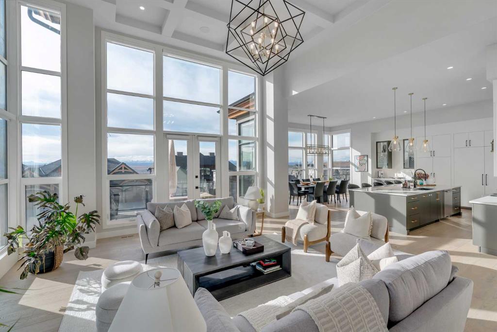 The kitchen flows seamlessly into the dining and great room, highlighted by a dramatic fireplace and coffered ceiling. A versatile flex room provides the option for a home office or formal dining space. The main-floor primary retreat is a true sanctuary, featuring a private deck, spa-inspired ensuite with heated floors, soaker tub, glassed shower, double vanity, private water closet, and a show-stopping walk-in closet with custom built-ins and dual laundry chutes. A second main-floor bedroom with its own heated-floor ensuite, a beautiful powder room, a dream laundry room, and a large mudroom complete this level. The upper loft offers a quiet retreat with a dual tech desk, TV lounge, private 4-piece bath, linen storage, and a third bedroom. The expansive walk-out lower level is designed for entertaining, featuring a custom wet bar with large island, third dishwasher, and illuminated glass wine storage for 144 bottles. A second fireplace anchors the lounge area, alongside space for a full-size pool table, seating areas, a glass-enclosed home gym, fourth bedroom, full bathroom with heated floors, and a flex space easily converted to a fifth bedroom. A full-width deck with privacy panels and future hot tub wiring extends outdoor living. Additional highlights include flat ceilings, solid core doors, custom lighting, CAT5 wiring, Ecobee thermostats, air conditioning, built-in speakers, Ring security, and a 900+ sq. ft. heated quadruple garage with 10’ doors, epoxy flooring, EV charging, hot/cold taps, floor drains, and lift-ready ceilings. The professionally landscaped yard features xeriscaping and irrigation. Ideally located near top public and private schools, parks, pathways, Westhills, Aspen Landing, Westside Rec Centre, and major roadways, this is an exceptional Springbank Hill residence where luxury meets effortless living.