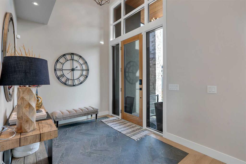 Welcome to 100 Elkton Close SW, a spectacular luxury walk-out bungalow with loft by Winchester Builders, ideally situated on one of Springbank Hill’s most exclusive crescents. Offering 6,160 total square feet of impeccably finished living space plus a heated quadruple garage, this home delivers exceptional craftsmanship, thoughtful design, and everyday livability at the highest level. From the moment you enter, soaring ceilings, abundant natural light, and designer finishes create an immediate sense of understated elegance. The heart of the home is a stunning gourmet kitchen, anchored by an 11.5’ quartz sit-up island with added storage, top-of-the-line Thermador appliances, custom Hammersmith hood fan, beverage centre, and soft-close custom cabinetry with maple-lined, dovetail drawers. A fully equipped butler’s pantry adds a second sink, dishwasher, beverage fridge, Bosch speed oven, and generous storage.