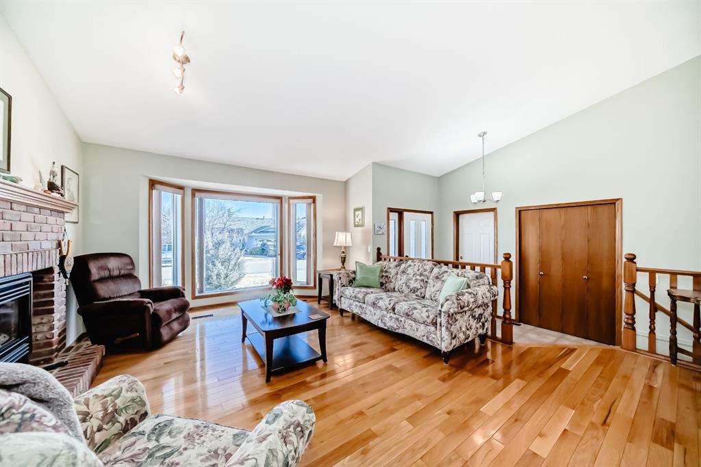 ** OPEN HOUSE Sunday April 19th 1:00-3:00pm** Welcome to 32 W Mackay Crescent, ideally located within walking and biking distance to everything Cochrane has to offer, restaurants, shops, schools and the beautiful Bow River pathways. Offered for the first time, this lovingly maintained bungalow was built in 1991 by the original owner and has been exceptionally cared for ever since. The home features a spacious double attached garage and beautifully landscaped and fully fenced front yard and back yard with mature flower beds for great curb appeal. Inside, a bright open concept layout connects the front living room and dining area, highlighted by vaulted ceilings, updated windows that fill the space with natural light, and a cozy fireplace that creates the perfect gathering spot. The kitchen offers generous workspace, newer appliances, white and bright cabinetry and tile back splash with direct access to an extended deck ideal for summer BBQs. The main level also includes a spacious primary bedroom with two large closets and a 3 piece ensuite, a second bedroom, a 4 piece bathroom, and convenient upper-level laundry that could be converted back to a third bedroom if desired. The fully developed basement features a large family room, a third bedroom or office, and a sizeable mechanical room with ample storage. Additional updates include an irrigation system, roof replaced in 2017, newer upper-level vinyl windows, hardwood flooring in the upper bedrooms, updated tile in the bathrooms, hot water tank replaced in 2016, and an original furnace that has been professionally serviced and cleaned annually. Pride of ownership is evident throughout this exceptional home. Book a showing today, this one won\'t last long!