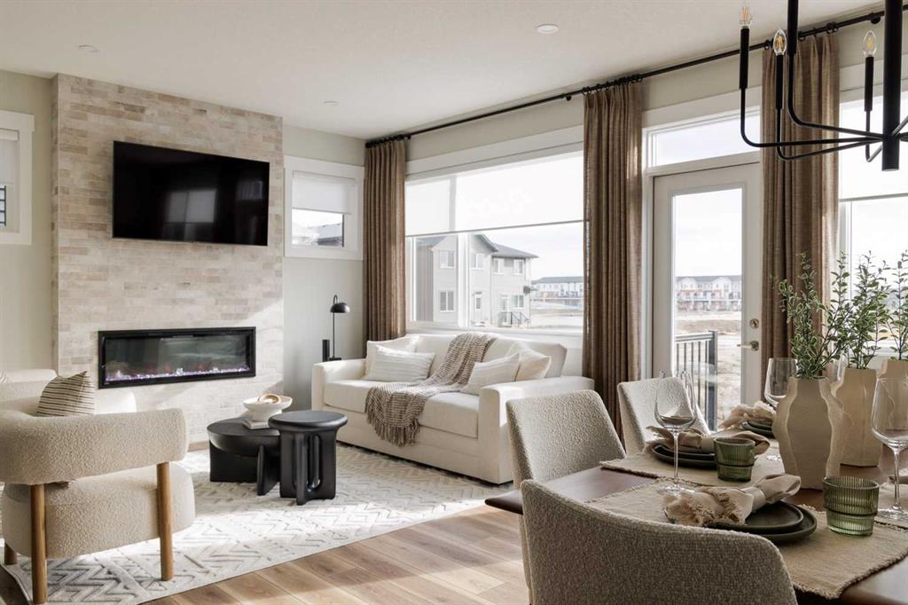 This quick-possession front-drive home offers a well-balanced layout with upgraded finishes and strong everyday functionality in Glacier Ridge. Featuring 2,284 sq.ft., 3 bedrooms, and 2.5 bathrooms, the main floor is finished with 9’ ceilings, luxury vinyl plank flooring, a gourmet kitchen with quartz countertops, stainless steel appliances including a gas cooktop and built-in wall oven, a flush eating bar, and a walk-in pantry. The dining area and great room are bright and open, highlighted by an electric fireplace, while a dedicated main floor office adds practical work-from-home space. Upstairs includes a spacious bonus room, a large primary bedroom with walk-in closet and ensuite featuring tiled shower walls, two additional bedrooms each with walk-in closets, a generous laundry room, and upper-level railing. Added highlights include iron spindle railing on both levels, extra side and basement windows, permanent soffit lighting, a side entry, gas line for BBQ, an 8’ front entry door with transom, and a 9’ basement foundation offering future development potential. Located in Glacier Ridge, a growing northwest Calgary community with parks, pathways, and convenient access to major routes, this home includes the confidence of a full builder warranty. Book your showing today. (Interior photos are of a showhome with similar layout and may not fully represent the property for sale)