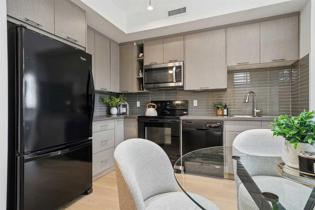 This 748 sq ft, east-facing home features a smart, functional layout with 2 bedrooms and 2 full bathrooms, including a private ensuite. The L-shaped kitchen maximizes workspace and storage, flowing into a bright living area filled with natural light. Brand new flooring and modern finishes enhance the home’s clean, contemporary feel.