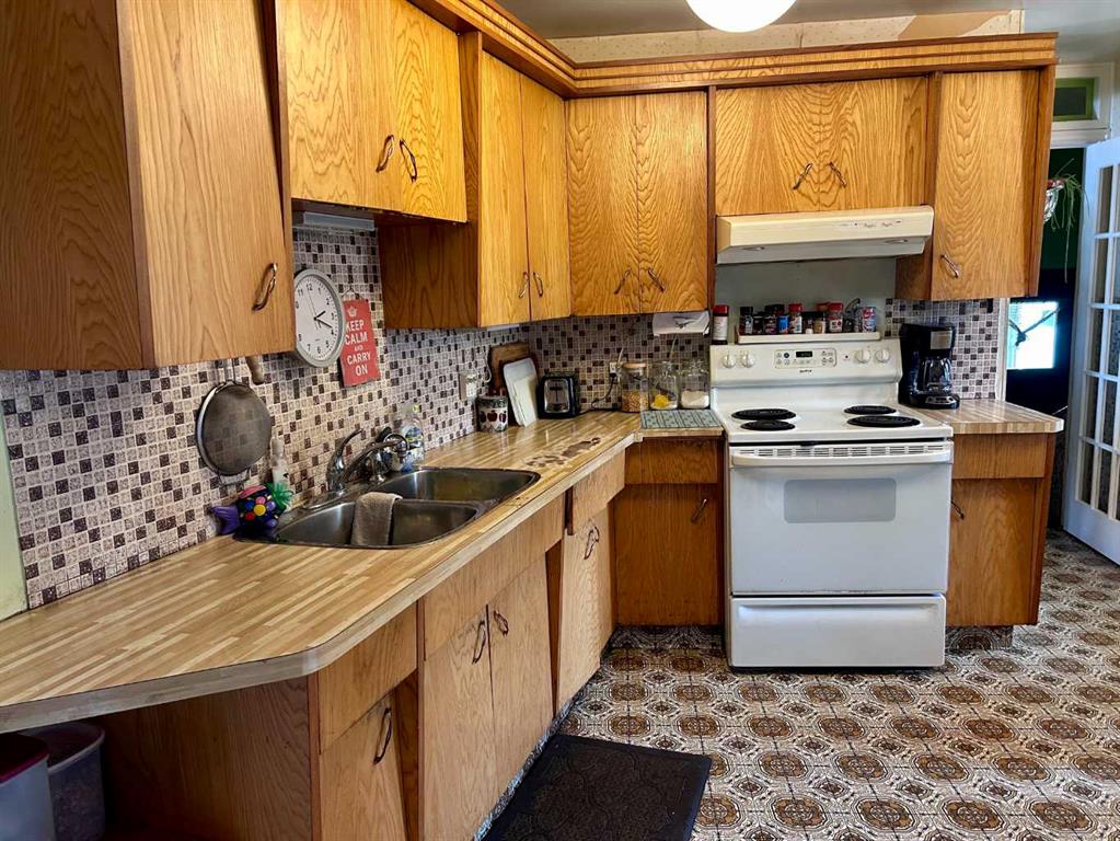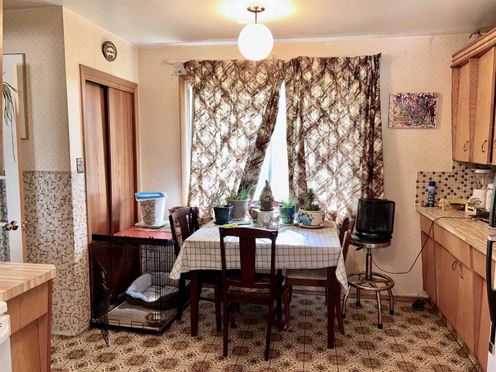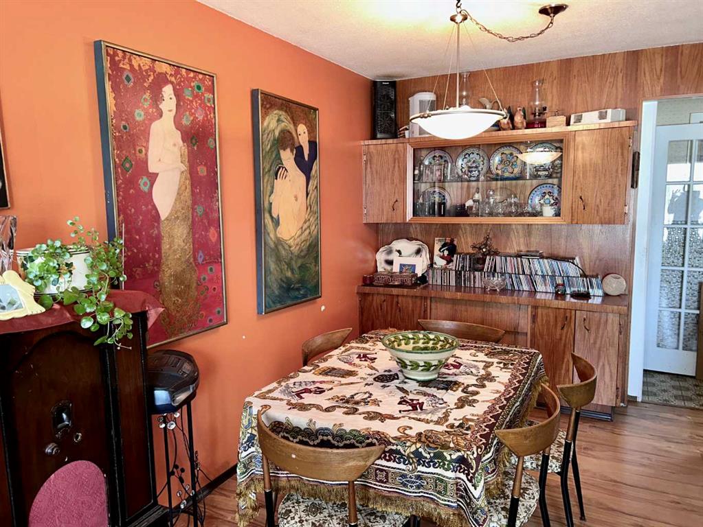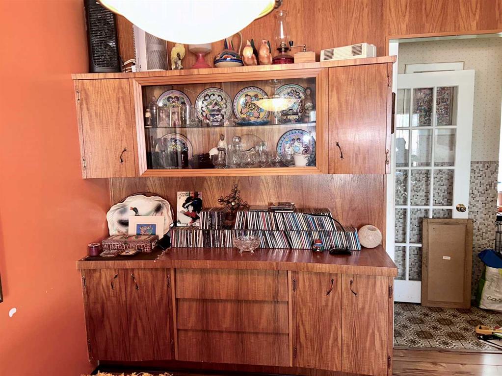 Motivated Seller! Mid-Century Modern Gem with Income Potential in Innisfree, AB. Welcome to this unique mid-century modern home located on a spacious corner lot in the charming Village of Innisfree. This well-maintained property showcases stunning original features, including an unpainted built-in credenza, elegant china cabinets, and a distinctive angled wall—perfect for buyers who appreciate timeless design and architectural character. Inside, you\'ll find: 5 bedrooms (3 on the main level, 2 downstairs); 2 full bathrooms; A large eat-in kitchen with abundant cabinetry and counter space; and a fully developed basement with a kitchenette, ideal for use as a secondary suite. The spacious rumpus room offers room for everyone, featuring a hidden playhouse for kids and a bar area for entertaining. Enjoy the outdoors in the 3-season enclosed porch, which opens to a private patio and connects to a single garage, great as a workshop or garden shed. A second double garage provides ample parking for larger vehicles or extra storage.