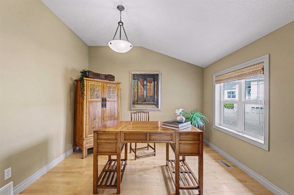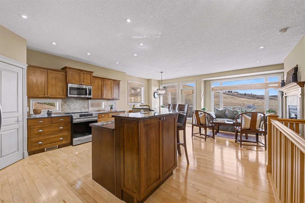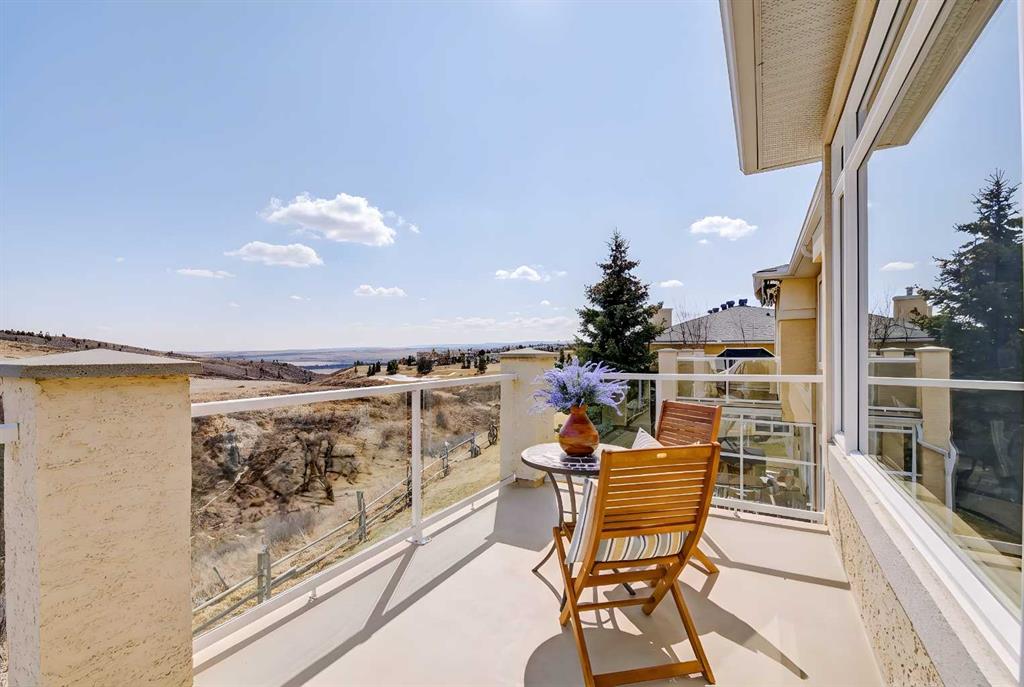 Welcome to the GOLF COMMUNITY OF GLENEAGLES. Are you ready to DONATE THE LAWNMOWER and THROW AWAY THE SNOW SHOVEL? No need for them here! Have you been waiting for a SPACIOUS WALKOUT BUNGALOW VILLA with a STUNNING VIEW FROM BOTH LEVELS? Like to travel? Would it make RV travelling easier if you could LOAD YOUR RV ON the DRIVEWAY (which is close to 40\' long)? If so, then come see unit #149 at \'Glenhaven\'. Backing on the ridge, with a view TOWARD THE RAVINE, and the GOLF COURSE, and the MOUNTAINS! From the time you pull into this villa development you will feel enveloped by natural surroundings. Welcome home as you pull into your IMMACULATE DOUBLE ATTACHED GARAGE with EPOXY FLOORING (ALSO insulated, drywalled, painted, AND including a workbench with built-in power plugs). Now STEP IN THE FRONT DOOR and you will immediately appreciate the TASTEFUL DECOR and THOUGHTFUL DESIGN of this 1600 square foot main floor plan! Impeccable HARDWOOD FLOORING, 9\' CEILINGS, KNOCKDOWN TEXTURE, and UP-SIZED WINDOWS THROUGHOUT, plus a generous addition of LIGHT-TRANSFERRING INTERIOR TRANSOM WINDOWS! From the front entry, the dining room is on your left and the office on your right. The FRONT OFFICE with DOUBLE FRENCH DOORS could double as a quiet TV room (or even a second bedroom). Host your dinner guests in your inviting and elegant formal dining room! The kitchen is outstanding! With a LARGE CENTRAL ISLAND (featuring double-sided cabinetry), GRANITE COUNTERS, STAINLESS STEEL appliances and PRISTINE MAPLE cabinets in WARM CINAMMON tones. From the breakfast nook, sip your coffee and drink in EXPANSIVE VIEWS to the hillside above and the ravine below. In the winter, you can cozy up in your LIVING ROOM to a GAS FIREPLACE, with stylish columns and a mantle to match the kitchen cabinets. Or in the summer, step outside to barbeque your dinner on the SPACIOUS UPPER DECK with vinyl flooring (plus aluminum railing with glass inserts to maximize the view)! After a busy day at work or play, you can unwind and relax in your own SPA-LIKE ENSUITE! This ensuite is truly beautiful with a fully tiled corner shower siding onto a deep soaker tub (with one step up for easy access)! INCREDIBLE PRIVACY from your primary bedroom, with no other homes in your sightline, or any walking path behind. Let\'s head DOWNSTAIRS to your FINISHED WALKOUT BASEMENT with a RARE AND TRULY BRILLIANT APPROACH TO IN-FLOOR HEAT! This basement\'s concrete floor has perimeter furnace vents in the slab, just like your main level! True story! This perimeter in-slab heat system, plus your 2nd fireplace in the basement will keep the lower level feeling just like upstairs. The spacious basement level includes another bedroom and full bathroom, huge rec room and large storage area. The rec room includes a gorgeous brick-faced fireplace, arch detailing, raised hearth. Step outside to a lower patio, covered by the upper walkout deck. So many more exquisite features. Book your showing today!