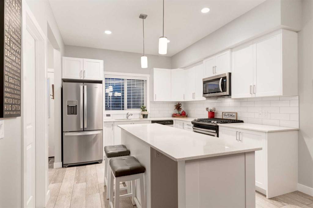 This IMMACULATE 4-BEDROOM, 3.5 BATH home boasts over 2000 SQ FT of living space highlighted by a charming FRONT VERANDA, a thoughtfully designed BACKYARD and an INSULATED DOUBLE CAR garage. MODERN and STYLISH, this BRIGHT and INVITING home features 9’ CEILINGS, a NEUTRAL COLOR pallet and an OPEN CONCEPT. From the welcoming front entry, the inviting living room with FIREPLACE flows seamlessly into the dining room and CHEF’S KITCHEN, which features AMPLE cabinetry, stunning QUARTZ countertops, UPGRADED S/S APPLIANCES including a gas stove, a large ISLAND with breakfast bar and beverage fridge, and an OVERSIZED PANTRY. The main level includes a 2pc Bath and well-designed Mud Room offering direct backyard access. The upper level is BRIGHT and AIRY with AMPLE NATURAL LIGHT, offering Two Generously Sized bedrooms, a Full 4pc Bathroom, convenient UPPER-FLOOR LAUNDRY and the PRIMARY BEDROOM with Private 3pc.ENSUITE and a Very Sizeable WALK-IN closet. The FULLY FINISHED BASEMENT provides a spacious FAMILY ROOM, a Full 4pc Bathroom and 4th BEDROOM complete with a large WALK-IN closet. Additional STORAGE can be accommodated in the utility room and under the stairs. Outside you will find that this home is SET BACK FROM THE STREET and fronts onto a GREENSPACE creating a sense of OPENNESS and PRIVACY with views from the front veranda. The THOUGHTFULLY LANDSCAPED backyard is FULLY FENCED, offering a sun filled PATIO perfect for entertaining or unwinding. The DOUBLE CAR GARAGE is fully drywalled and insulated, roughed in for a future heater and has by an ADDITIONAL PARKING PAD. Located in the WELCOMING Community of MIDTOWN, this home is CLOSE to parks and playgrounds, schools, shopping and major highway access, offering a CONVENIENT and simplified lifestyle! Call to view today!