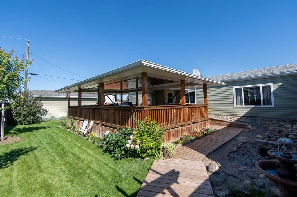 Welcome to this spacious 4 bedroom, 2 bathroom mobile home with a 16x22 addition, perfectly set on a quiet corner lot. This home offers plenty of room inside and out, featuring a large covered deck, ideal for summer barbecues, hosting friends, or simply relaxing in the shade. The yard is fully fenced and beautifully landscaped with a fish pond, mature trees, and green space for kids or pets to play. An insulated shed adds extra storage and can easily be converted into a heated workshop with just a heating source. Inside, the kitchen is warm and functional with rich wood cabinetry, ample counter space, and updated appliances. The open layout flows seamlessly into the living spaces, while the 2012 renovations add peace of mind and modern comfort. With an appraised price of $343,000, this property delivers value, privacy, and a lifestyle ready for both relaxation and entertaining. Conveniently located on a quiet street in a family-friendly neighbourhood, this home combines comfort and charm with practical upgrades.