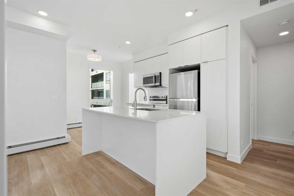 This brand-new corner 2 bedroom, 2 bathroom condo offers a smart and functional layout with a well-designed living space and modern finishes throughout. The kitchen sits at the heart of the home and features a large island, stainless steel appliances, and ample cabinetry and storage. Just off the kitchen is the dedicated dining area, which leads to your private southwest-facing balcony—perfect for soaking up the sun and enjoying summer evenings.