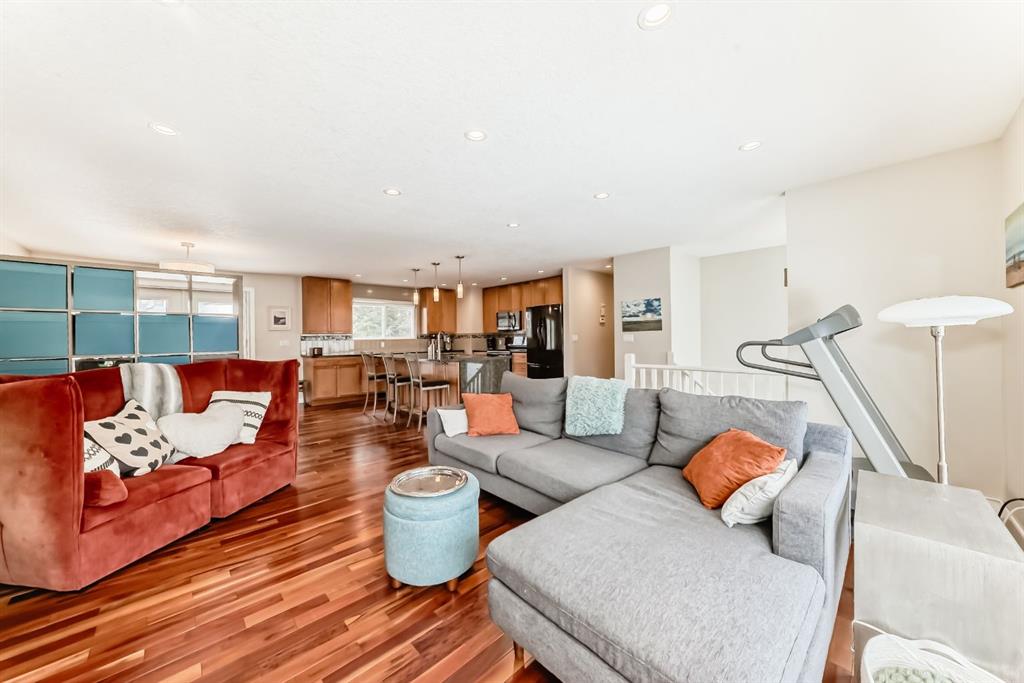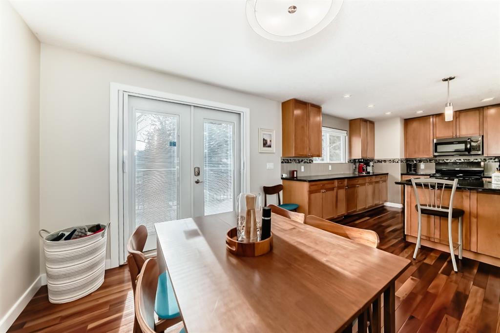 Updated home in walkable Varsity Village(this area features oversized neighbouring lots) on a quiet cul de sac (very private very little traffic with only one traffic entrance to this neighbourhood) perfect for a downsizing couple or family (4-5 bedrooms, three full bathrooms. The fully fenced, spacious large back yard backing onto a pedestrian path walkway creates a park like setting. Main floor features a modern open concept kitchen overlooking living room space (newer gas fireplace) with hardwood flooring throughout, granite countertops, lots of cabinetry, overlooking both the front and back yards. The dining room area walks out onto a very spacious deck (double tiered), perfect for barbequing and entertaining. The 4 piece ensuite bathroom on the upper floor features a large walk in shower with Grohe fixtures, and a double sink vanity in marble. The other 2 spacious bedrooms on the main floor share a main 4 piece bath. The downstairs was fully renovated in 2017 with luxury vinyl plank flooring, family room with a gas fireplace, 4th bedroom and a glass shower in a 3 piece bath. Walk up rear entrance from the lower level. Most amenities are within a 10 minute walk in any direction - Market Mall, U of C, University District, Brentwood Village, and Northland. Brentwood C Train station Several schools for all ages and both Foothills Campus and Alberta Children\'s Hospital, are within a 5-10 minute drive. Non smoking home, double attached garage.