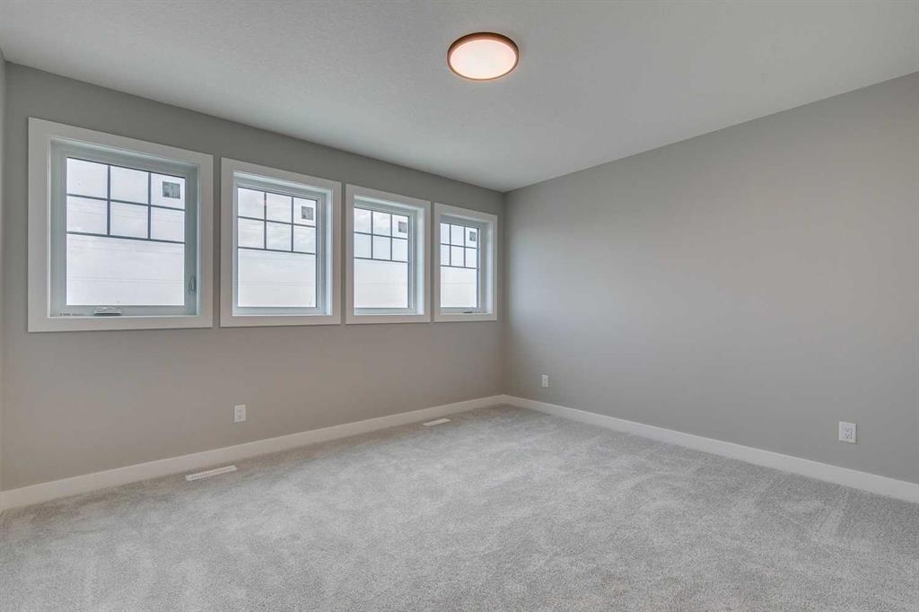 Welcome to the Elliot by Broadview Homes, a thoughtfully designed new construction home located in the southeast Calgary community of Hotchkiss. Offering a functional layout with a main floor flex room, side entrance, upper-level bonus room, walk-in closets in every bedroom, and basement rough-ins for future development, this home is built to support both everyday living and long-term flexibility. Step inside from the covered front porch to a versatile front flex space, perfect for a home office, playroom, or quiet workspace. The main level features an open-concept design with a bright kitchen at the center, complete with a large island, ample cabinetry, and excellent flow into the dining area. The spacious great room is ideal for relaxing or entertaining, highlighted by an electric fireplace with stunning floor-to-ceiling tile detail that creates a striking focal point. A convenient powder room and a practical rear entry with a generous closet complete the main floor. The side entrance leads directly to the undeveloped basement, with rough-ins already in place, creating outstanding potential for future additional bedrooms, a home gym, or extended living space. Upstairs, the layout is both smart and family-friendly. Two secondary bedrooms, each with their own walk-in closet, are separated by a central bonus room that works beautifully as a media space, homework zone, or second lounge. A dedicated upper laundry room adds everyday convenience. The primary suite offers a private retreat with an oversized walk-in closet and a full ensuite. Located in Hotchkiss, one of Calgary’s newest master-planned communities, residents enjoy access to mountain views, expansive green spaces, and scenic boardwalk pathways surrounding a 30-acre wetland. With future parks, schools, and shopping planned nearby, plus quick access to Stoney Trail and Highway 22X, you’re only minutes from Seton, the YMCA, South Health Campus, and major amenities. An excellent opportunity to own a brand new Broadview home in SE Calgary, offering modern design, flexible living space, and future development potential.