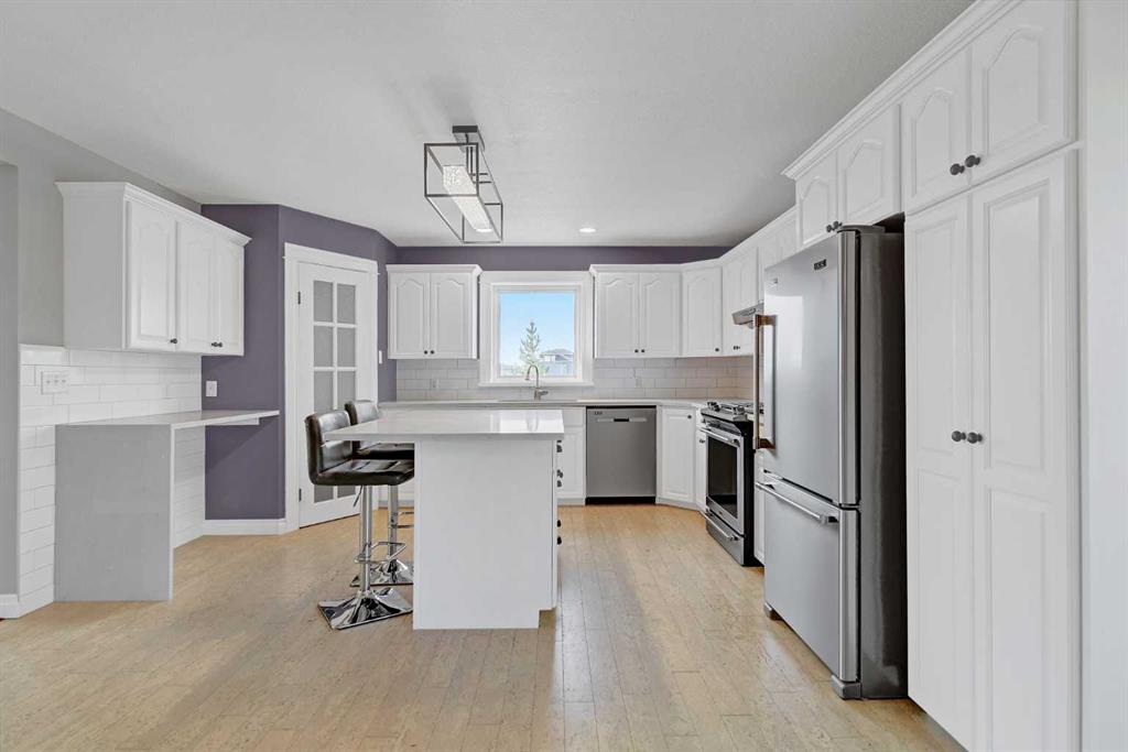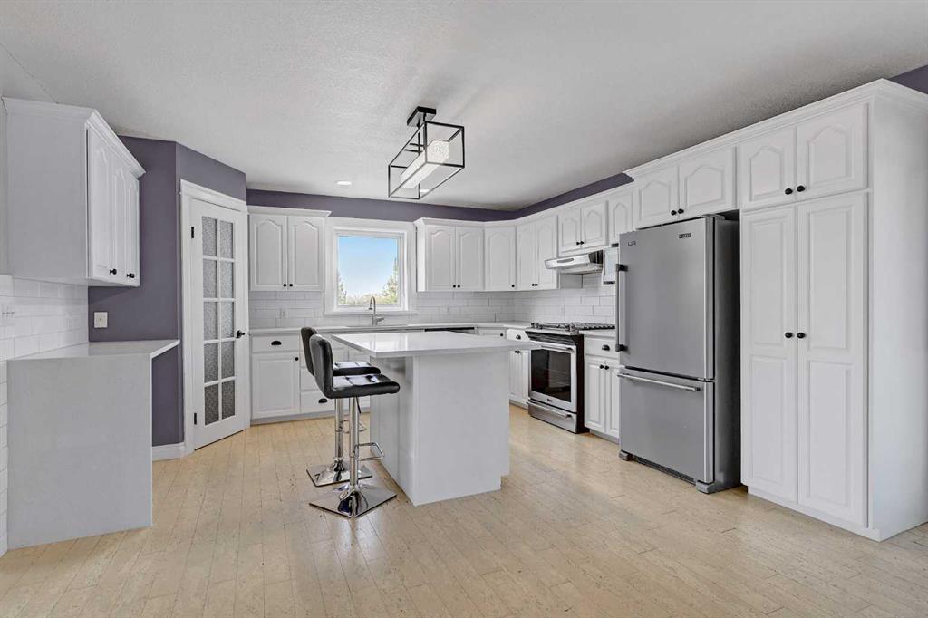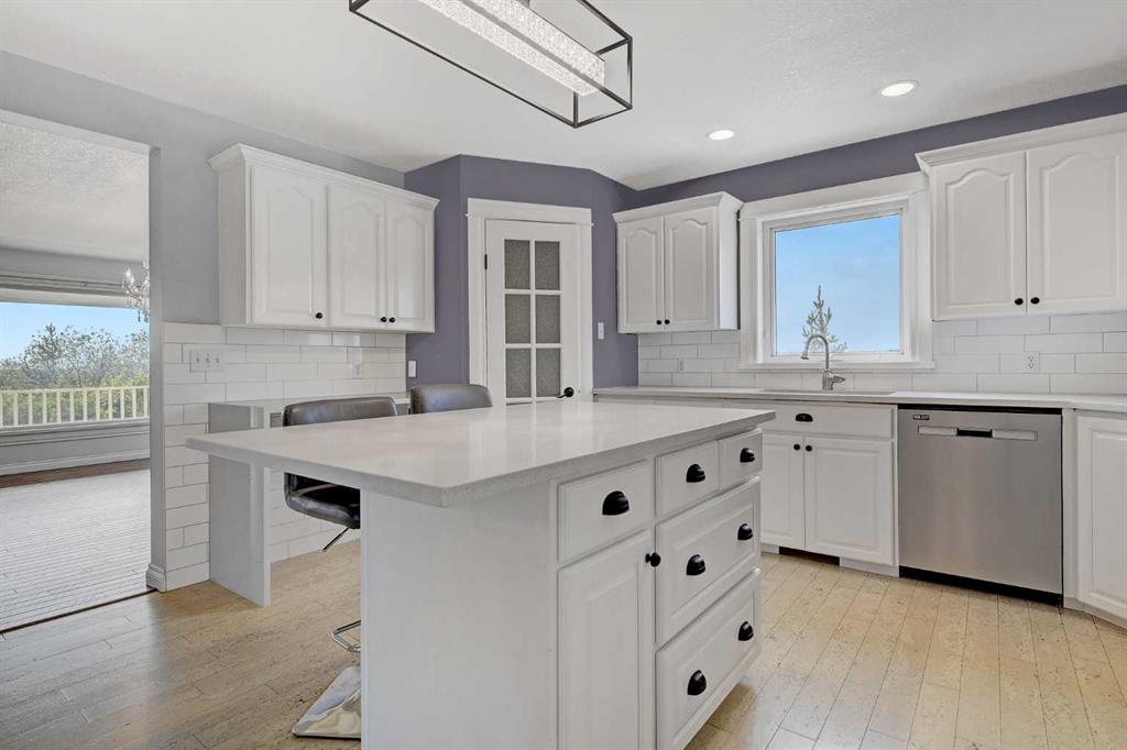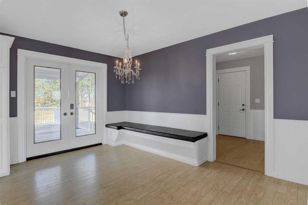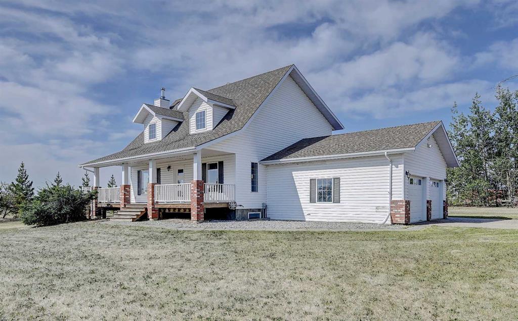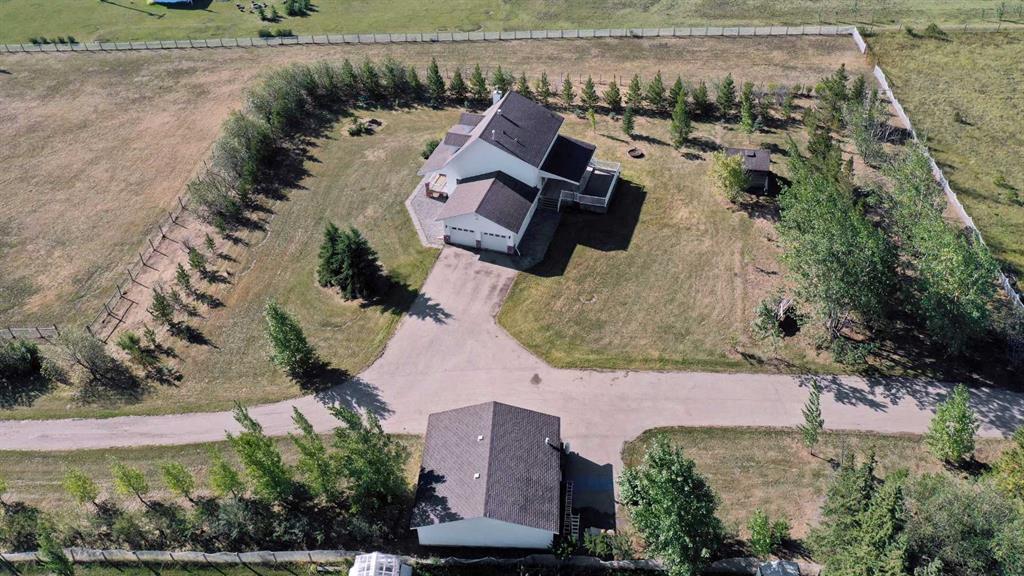 If you have been waiting for an oversized CR-5 acreage close to town, and accessible by pavement, this may be the one! Perfect for the horse lover, or if you just want some extra space and privacy this 16.30acre parcel is just seconds north of City Limits. The well-established property features a beautiful home site on about 6 acres and 10 +/- acres of fenced pasture to the west. The private yard site includes fencing, tons of mature trees and landscaping, paved driveway, a fully developed and updated 2 storey home with double garage and an oversized detached garage (fits 3 cars). The home is a gorgeous blend of country style and modern updating, and you will love the wrap around deck providing covered front veranda and two-tiered partially covered rear deck. The main floor features hardwood flooring and wood stove in living room, large dining room or sitting area, dining nook with built in seating and double swing doors to patio, powder room and spacious white kitchen with quartz counters, stainless steel appliances, pantry and upgraded faucet and undermount sink. Upstairs includes 3 huge bedrooms with dormer windows, large walk-in closet or storage room and huge main bath with freestanding soaker tub, separate tiled shower with glass door and large vanity with quartz counter and his / her sinks. Basement is tastefully developed with 2 more bedrooms, living room with gas fireplace, full bathroom, finished laundry room and cold room / additional storage. Other notable features include: immediate possession, A/C, stamped concrete walkway, firepit, shed, fresh paint, new carpet and development potential with Aquatera city water availability. Book you’re showing today!