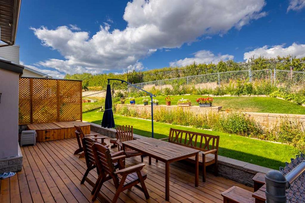 Welcome to Ranchlands Estates, where nature, privacy, and unique design come together in this truly one-of-a-kind residence offering over 3,200 sq ft of developed living space. Are you tired of seeing cookie cutter homes? Come and explore for yourself this incredible home backing directly onto an off-leash environmental reserve with expansive green space! This home is a rare sanctuary for those who value tranquility, privacy, and a connection to the outdoors. Upgraded over the years completely redone exterior featuring timeless stucco and stone, mature landscaping, underground irrigation, and a 50-year cedar shake roof. Recent improvements include over $5,000 in electrical upgrades (January 2025) with a new panel and sub-panel (updated in 2011). Additional highlights include two thoughtfully integrated additions, VOLA fixtures in all bathrooms, heated floors in the upper bathrooms, a fenced dog run, and so much more. The kitchen offers granite countertops, maple cabinetry, and a picturesque outlook onto the yard, while the adjacent dining room provides generous space for family dinners and gatherings. The main floor is complete with a laundry room, powder room, and access to a side deck perfect for summer barbecues. Upstairs, you’ll find a unique bedroom with vaulted ceilings and abundant natural light, ideal as a home office or creative space. In total, the home offers four bedrooms and 2.5 bathrooms, providing ample room for family and guests. The lower level adds versatile flex space perfect for an additional bedroom, gym, playroom or media room tailored to suit your lifestyle!