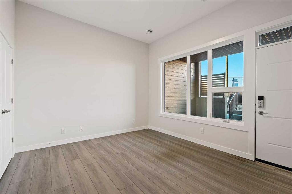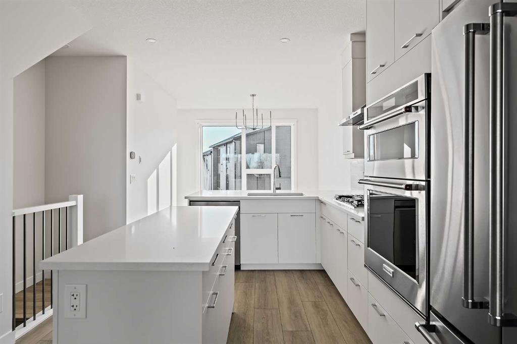 Welcome to The Alameda by Brookfield Residential - where modern design meets urban convenience, just minutes from downtown Calgary with stunning views! This beautiful 2-bedroom, 2.5-bathroom townhome offers over 1,500 sq. ft. of thoughtfully designed living space, complete with a single attached garage and a spacious main-level flex room - perfect for a home office, gym, or creative studio + 3 outdoor living spaces including a rooftop patio! The lower level features an expansive flex room spanning ~14\'x14\' with soaring 10\' ceilings and a wall of windows overlooking your private patio and the front street. Experience open-concept living on the main level highlighted by 9’ ceilings throughout with oversized triple-pane windows at either end providing endless natural light all year long. The kitchen is a chef’s dream, featuring KitchenAid gourmet appliances, including a gas cooktop, wall oven/microwave, and a chimney hood fan, all complemented by elegant finishes and generous counter space and a pantry. The timeless white kitchen is central to the main level, opening to both the dining area and great room, creating the ideal space for entertaining. The great room has direct access to the main level balcony that spans 15\' x 9\'8\" and includes a BBQ gas line for everyday convenience. The upper level features a large primary suite complete with walk-in closet and a private 4pc ensuite with dual sinks and a tiled walk-in shower. A large second bedroom, full bathroom and laundry complete the upper level. The top level of the home is where you\'ll spend your summers - soaking up the sun on your private ~200 ft2 rooftop patio with views overlooking the Shaganappi golf course and stunning views to the south and downtown Calgary! Complete with 2 living areas, 2 bedrooms, 2.5 bathrooms and 3 outdoor living spaces + a private attached garage, this home is perfect for professionals or down-sizers that appreciate convenience. Located away from Bow Trail, this premium location offers a quiet space for daily living with convenient access to the CTrain and downtown Calgary just minutes away. Additional features include convenient street parking in front, and full builder warranty + Alberta New Home Warranty - allowing you to purchase with peace of mind. This maintenance-free home is fully move-in ready with free legal fees for the purchaser in desirable Crown Park!