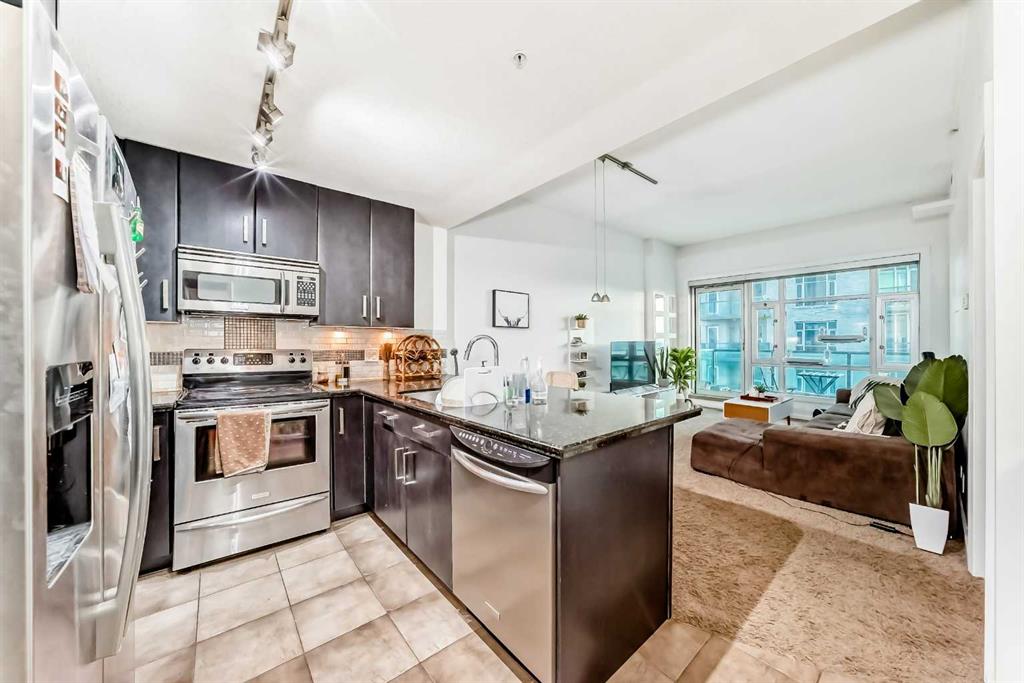 Enjoy stunning mountain and Stampede Grounds views from this well maintained 1 bedroom + den condo in the highly sought-after Sasso building. This apartment offers a rare and functional floor plan with 10-foot ceilings and an abundance of natural light throughout.
