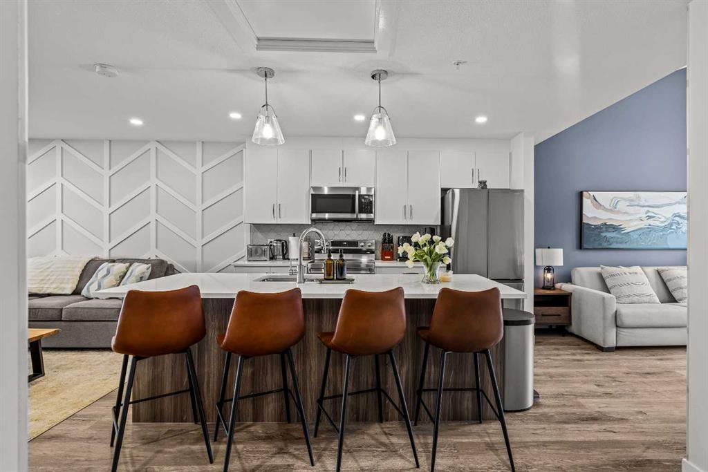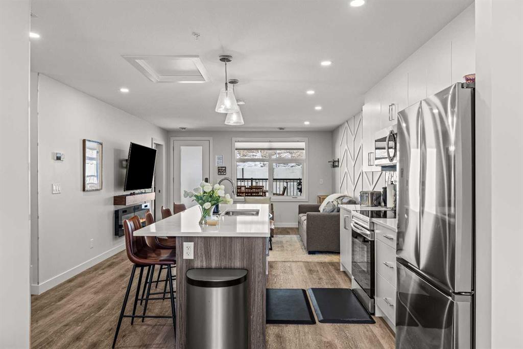 This mountain retreat is perfectly located just minutes from Canmore and the Banff National Park Gateway, offering an ideal blend of adventure and relaxation. This modern 2 bedroom, 2.5 bathroom escape is thoughtfully designed on two levels and showcases a contemporary open concept layout with stainless steel appliances, quartz countertops, and stylish finishes throughout. Thoughtfully upgraded and offered with a curated furnishing package, this turnkey property is designed for both comfort and entertaining. World class biking trails are right outside your door, with easy access to ski resorts and endless outdoor recreation. After a day of exploring, unwind in the complex’s hot tub and soak in the mountain lifestyle. Whether you are seeking a weekend getaway or a savvy investment, this property is short term rental approved on platforms like Airbnb and VRBO, offering excellent income potential. LIST PRICE INCLUDES GST. CONSULT YOUR ACCCOUNTANT ABOUT GST DEFERRAL.