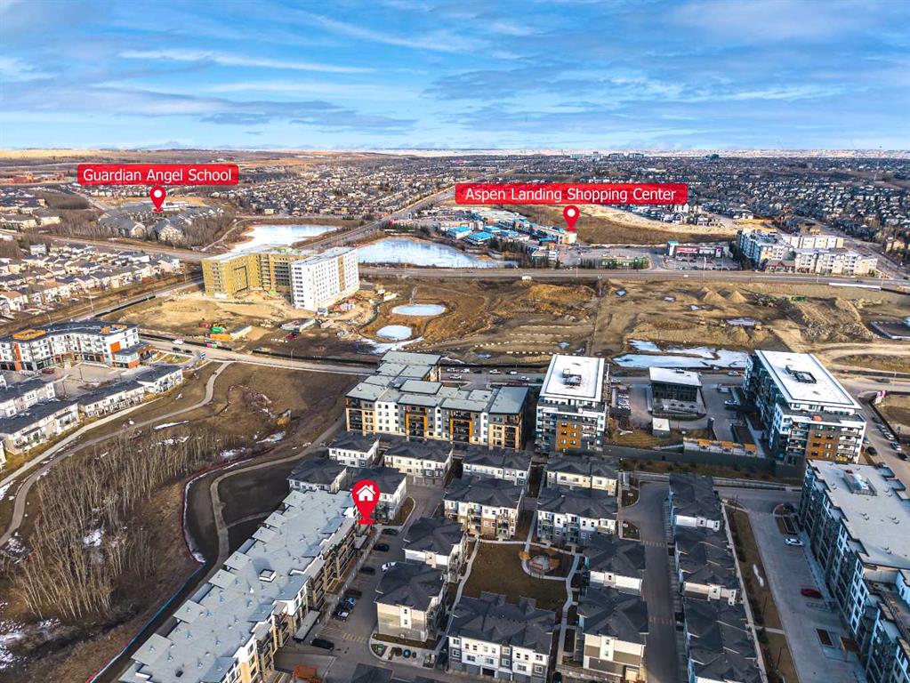 Located just steps from Aspen Landing, scenic pathways, and transit including 69 Street CTrain Station, with quick access to downtown and convenient routes west toward the mountains.