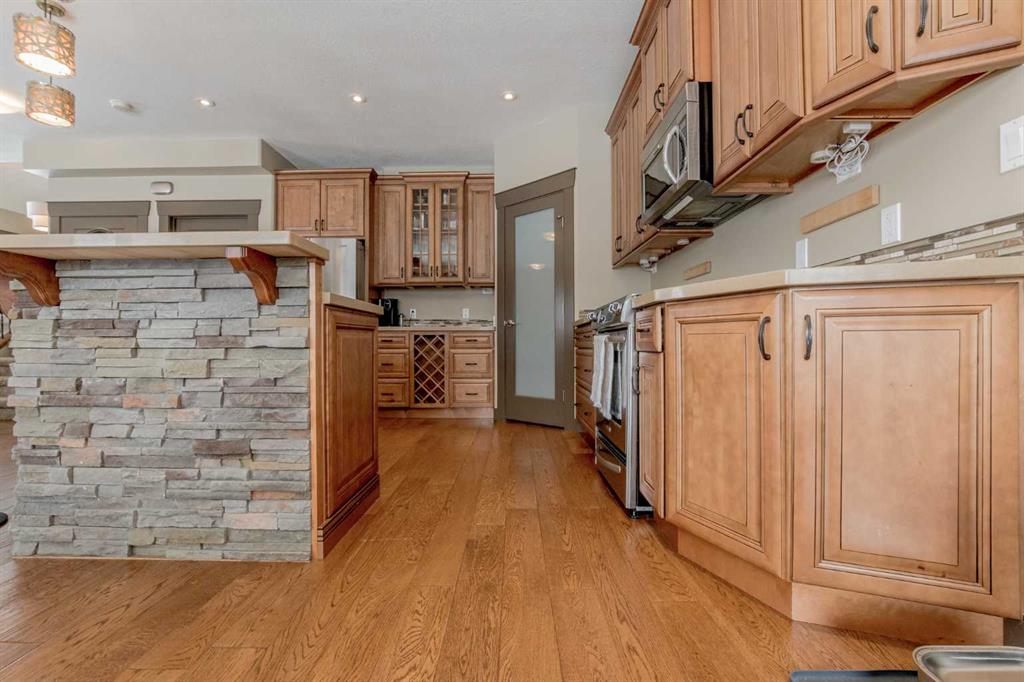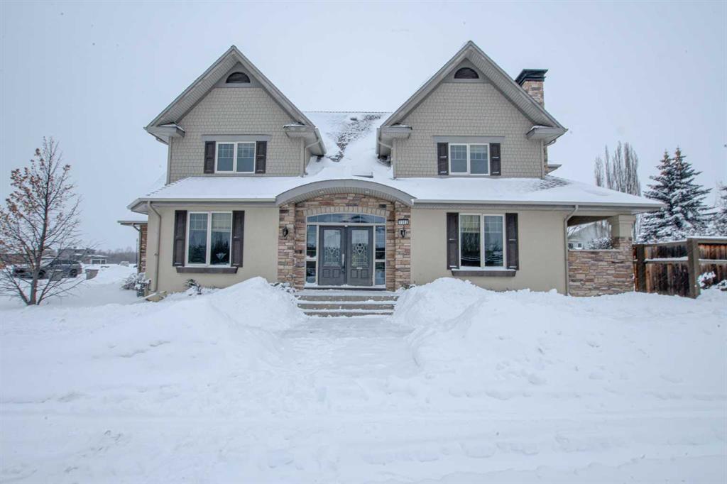This magnificent custom-built chalet-style home in Grande Prairie offers over 2,500 sq ft of thoughtfully designed living space with 5 bedrooms, an office/den, and 4.5 bathrooms — perfectly suited for modern family living. The open-concept main floor features a stunning kitchen with warm wood cabinetry, soft-close drawers, quartz countertops, stainless steel appliances, gas stove hookup, coffee bar, built-in wine rack, and a spacious walk-in pantry. A bright front office overlooks the front yard, creating an ideal work-from-home space. Upstairs you’ll find four bedrooms, including a functional Jack & Jill ensuite plus a private 4-piece bath for the third bedroom. The primary retreat showcases a luxurious 6-piece ensuite with tiled shower, soaker tub, dual sinks, built-in makeup vanity, and a generous walk-in closet with custom shelving. The fully developed basement is designed for entertaining and family enjoyment — complete with a guest bedroom and ensuite, entertainment area with built-ins and speaker wiring, kids’ play zone, and a stylish wet bar with quartz counters and custom lighting. Upgrades include air conditioning, hot water on demand & a natural gas fireplace. Step outside to a landscaped and fenced yard featuring a covered concrete patio and low-maintenance greenery. Enjoy easy access to a scenic paved walking path surrounding the neighborhood pond — perfect for morning walks or evening runs. A spacious, upgraded home offering comfort, function, and room for everyone!