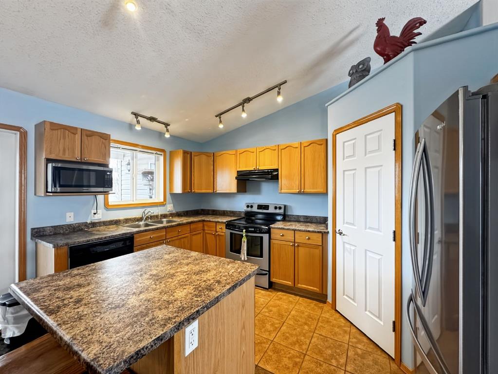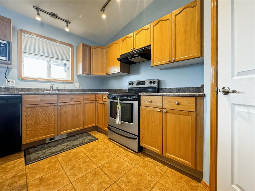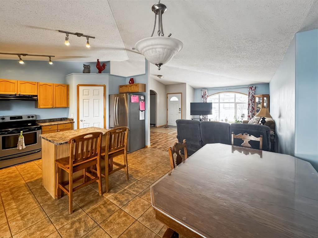 Welcome to this beautiful home nestled on a quiet cul-de-sac located just steps from the golf course, ball diamonds, scenic walking trails, and more. This prime location offers the perfect balance of convenience and peaceful living. Step inside to a bright and inviting main floor featuring high ceilings and a spacious living area filled with natural light. The kitchen is both functional and stylish, showcasing beautiful oak cabinetry, a pantry, and a central island that provides additional workspace and seating. The adjoining dining area offers easy access to your own private outdoor oasis — a covered deck overlooking a generous yard with mature trees that provide added privacy. Back inside, the main level also features a convenient laundry area with ample storage and direct access to the dbl heated garage. A full 4-piece bathroom and two well-sized bedrooms make ideal spaces for children, guests, or a home office. The primary bedroom is spacious and comfortable, complete with a walk-in closet and a private 3-piece ensuite.