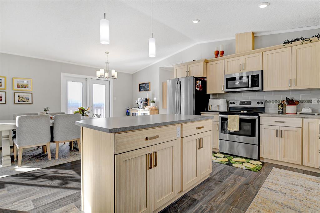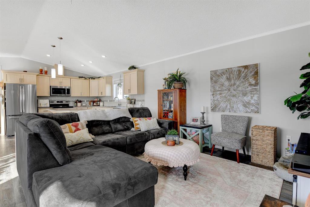 Welcome to this stunning modern manufactured home on a massive 9583 soft lot in the fantastic neighbourhood of Kensington! Offering 1,685 sq. ft. of beautifully designed living space, this 4-bedroom, 2-bathroom home combines comfort, functionality, and an unbeatable setting. With no neighbours on one side, you’ll enjoy added privacy along with a large deck and spacious backyard that backs onto walking trails and showcases peaceful pond views. Inside, the thoughtfully designed layout features a bright and open main living area perfect for everyday living and entertaining. The kitchen is a true highlight, complete with generous counter space, abundant cabinetry, a large island, and a massive pantry conveniently located across from the laundry room for ultimate practicality. The spacious primary bedroom offers a walk-in closet and a private 4-piece ensuite, creating the perfect retreat at the end of the day. On the opposite side of the home, you’ll find three additional bedrooms — one currently used as an office — along with another 4-piece bathroom, providing plenty of space for children, guests, or a growing family. This move-in ready home offers modern style, privacy, and access to nature — all in one incredible package. Don’t miss your opportunity to make it yours!